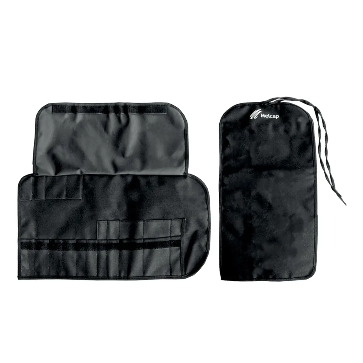 Custodia in tessuto lavabile e sterilizzabile di colore nero. Aperta misura 18 cm. di lunghezza x 10 cm. di altezza. E' strutturata da 20 scomparti di diverse misura dal più piccolo che misura 1 cm. al più grande che misura 2,7 cm. e dotata di un laccio che permette la totale chiusura. Accessorio comodo anche da viaggio.