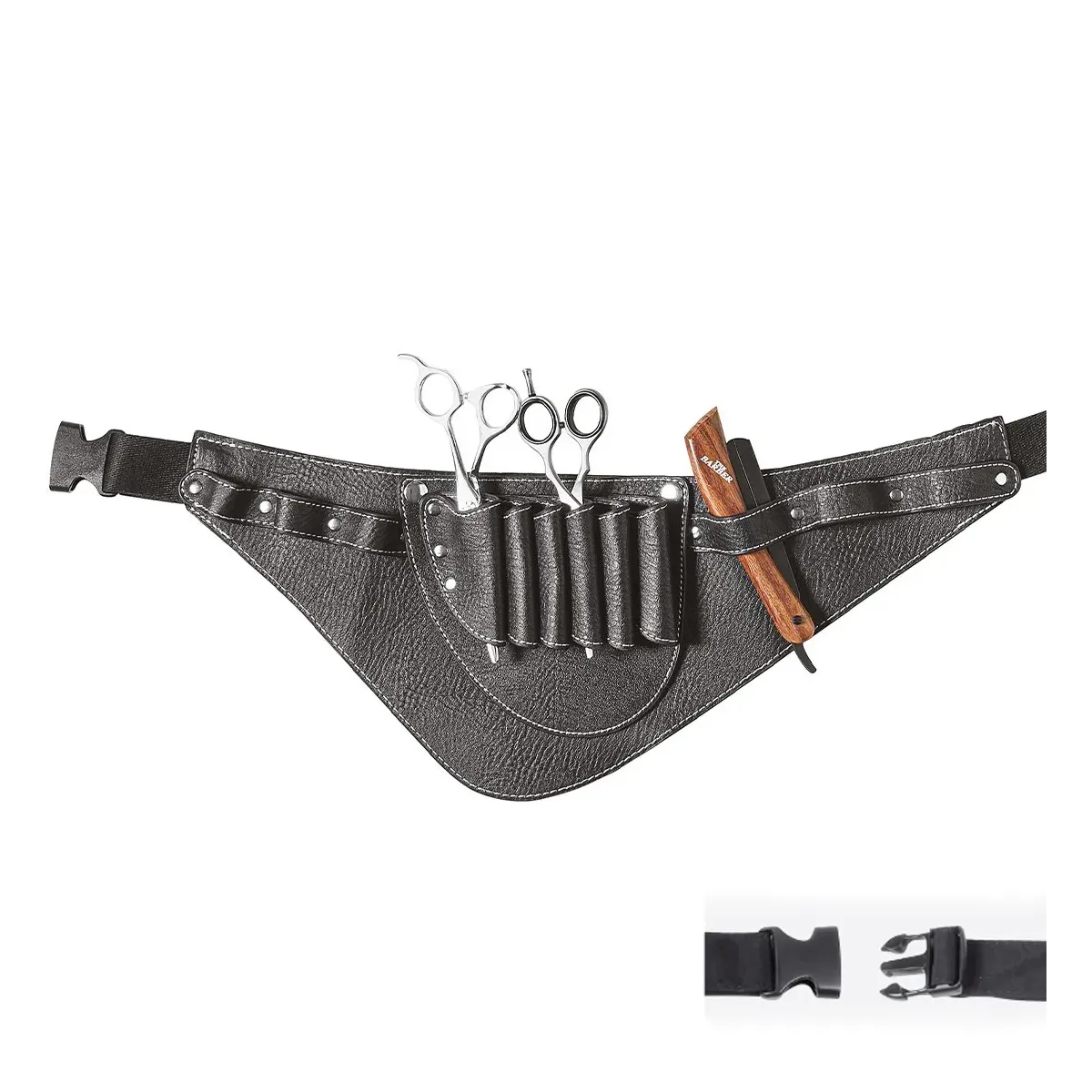 Cintura Porta Forbici e Attrezzi per le esigenze di ogni Barbiere o Parrucchiere, fatti in eco pelle e facilmente lavabili, con cinturino regolabile e chiusura ad incastro.