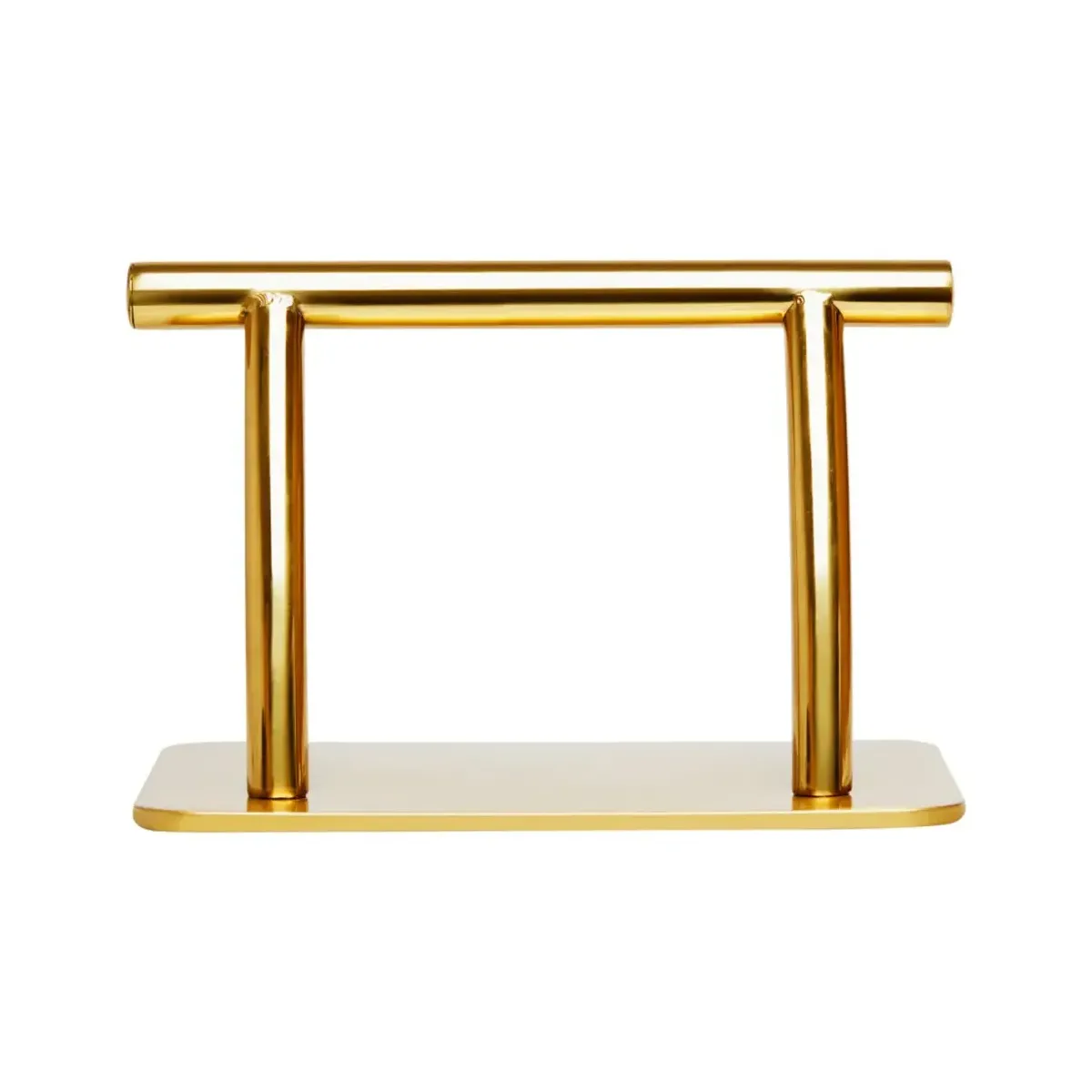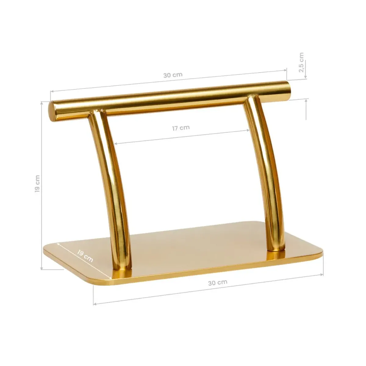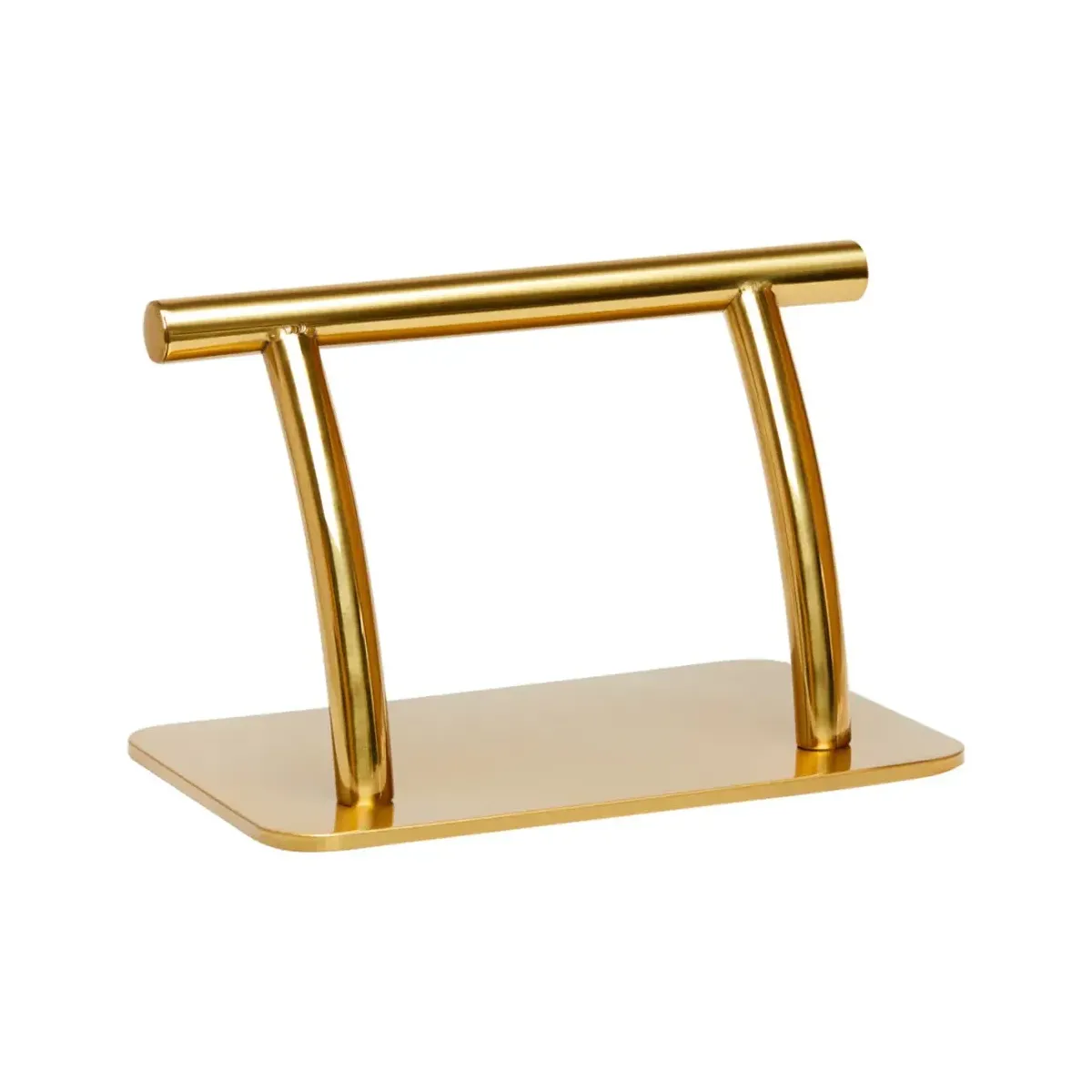 Poggiapiedi Parrucchiere professionale laccato in oro, ideale per arredare con elegante e stile per il tuo negozio E' dotato di piedini antiscivolo per evitare il movimento.