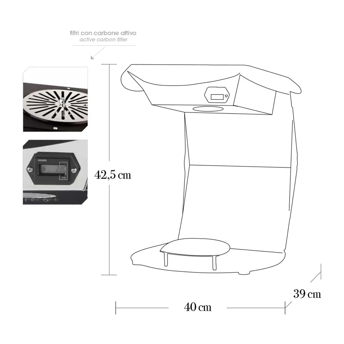 - La cappa aspira odori deve essere dotata deve essere dotata di filtro a carboni attivi specifico per ammoniaca e vapori organici in genere.