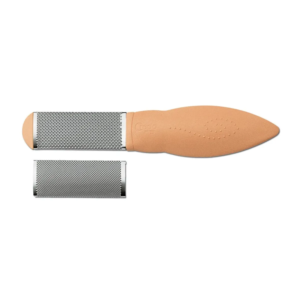 La Credo Raspa Piedi in Metallo a 2 Facce Intercambiabili è uno strumento professionale ideale per la rimozione efficace di calli, duroni e ispessimenti cutanei.