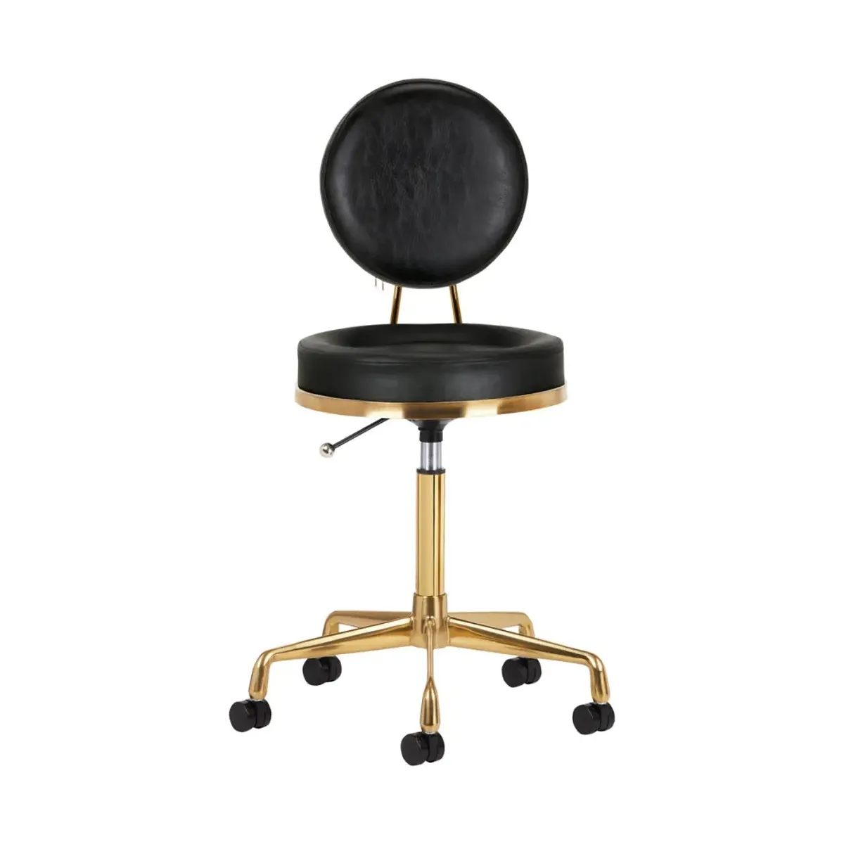 Sgabello Estetista Professionale con Schienale Nero e Oro