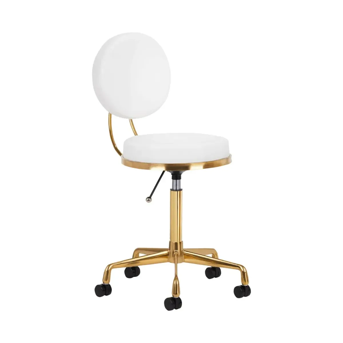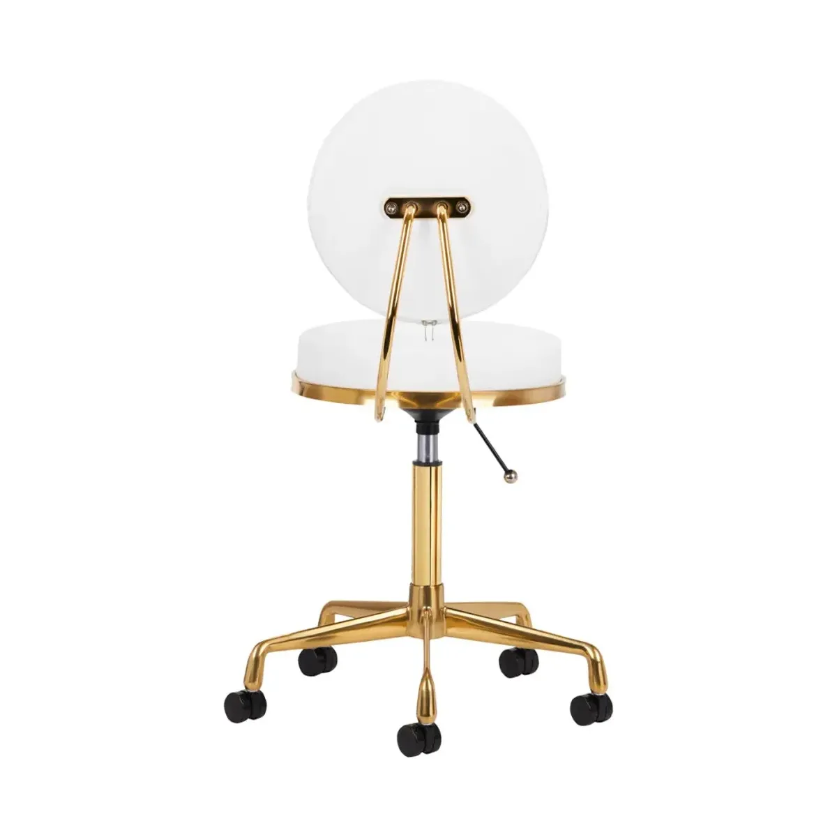 Sgabello Estetista Professionale con Schienale Bianco e Oro
