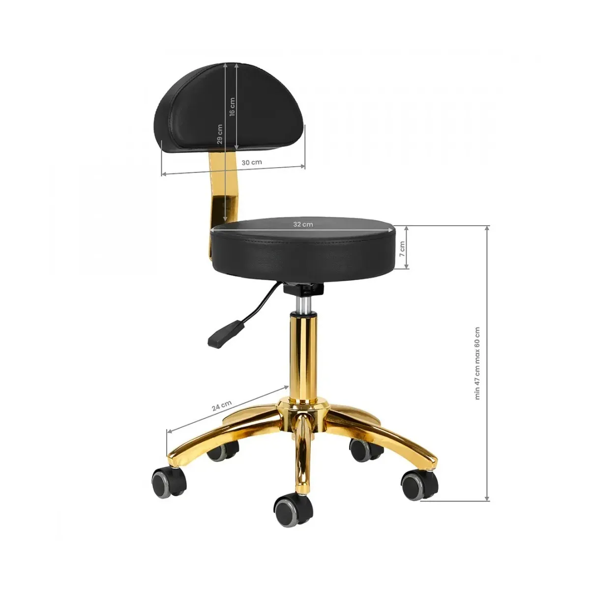 Sgabello Estetista Professionale Oro Eleva il comfort e lo stile del tuo centro estetico con questo sgabello professionale di alta qualità, progettato per offrire il massimo supporto e funzionalità sia all'estetista che al cliente. Il suo design ergonomico, unito alla praticità della regolazione in altezza, lo rende un elemento indispensabile per qualsiasi ambiente di lavoro dedicato alla bellezza e al benessere.