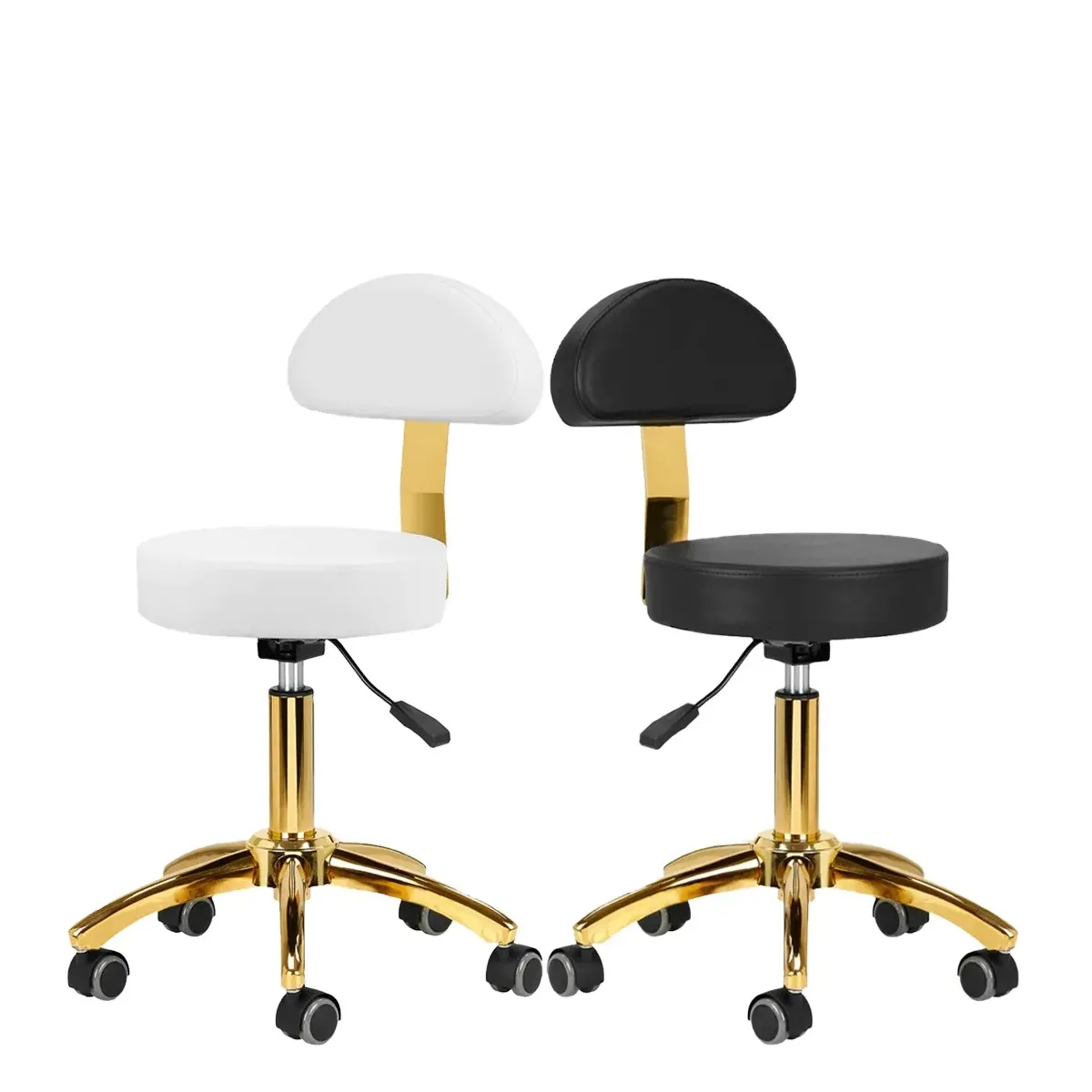 Sgabello Estetista Professionale con Schienale e Struttura in Oro