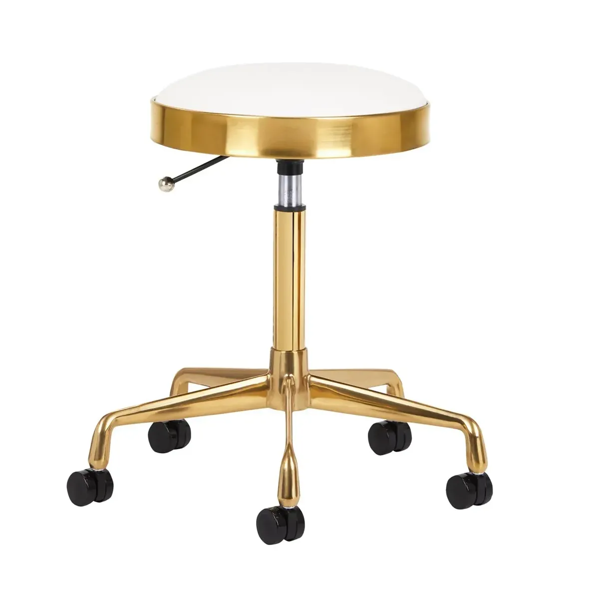 Design Elegante: La combinazione di bianco e oro conferisce a questo sgabello un aspetto lussuoso e sofisticato, ideale per studi estetici moderni e di classe.