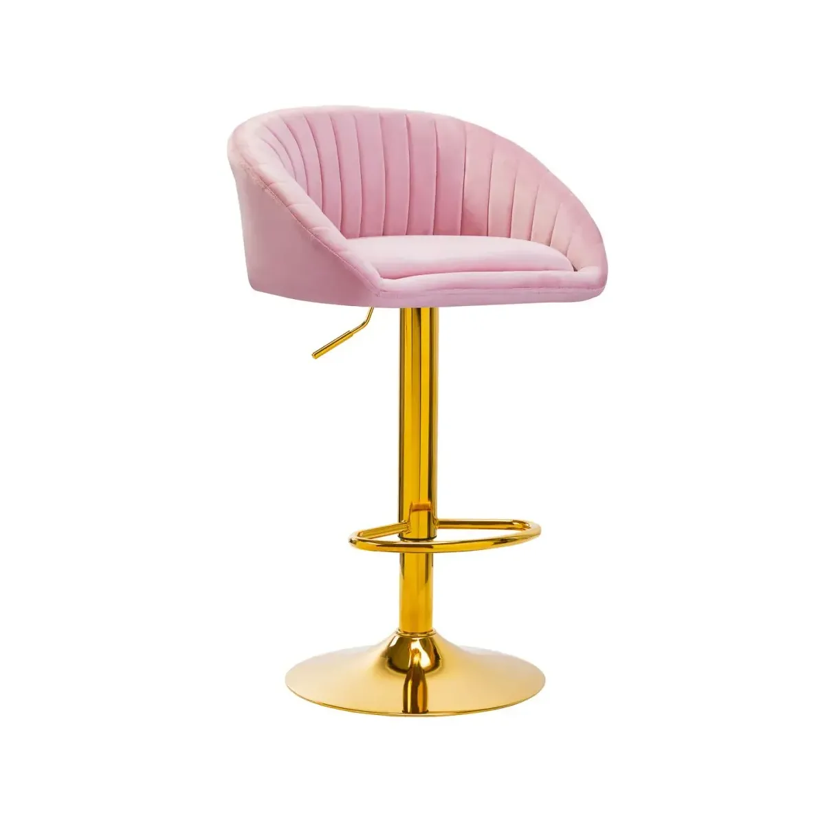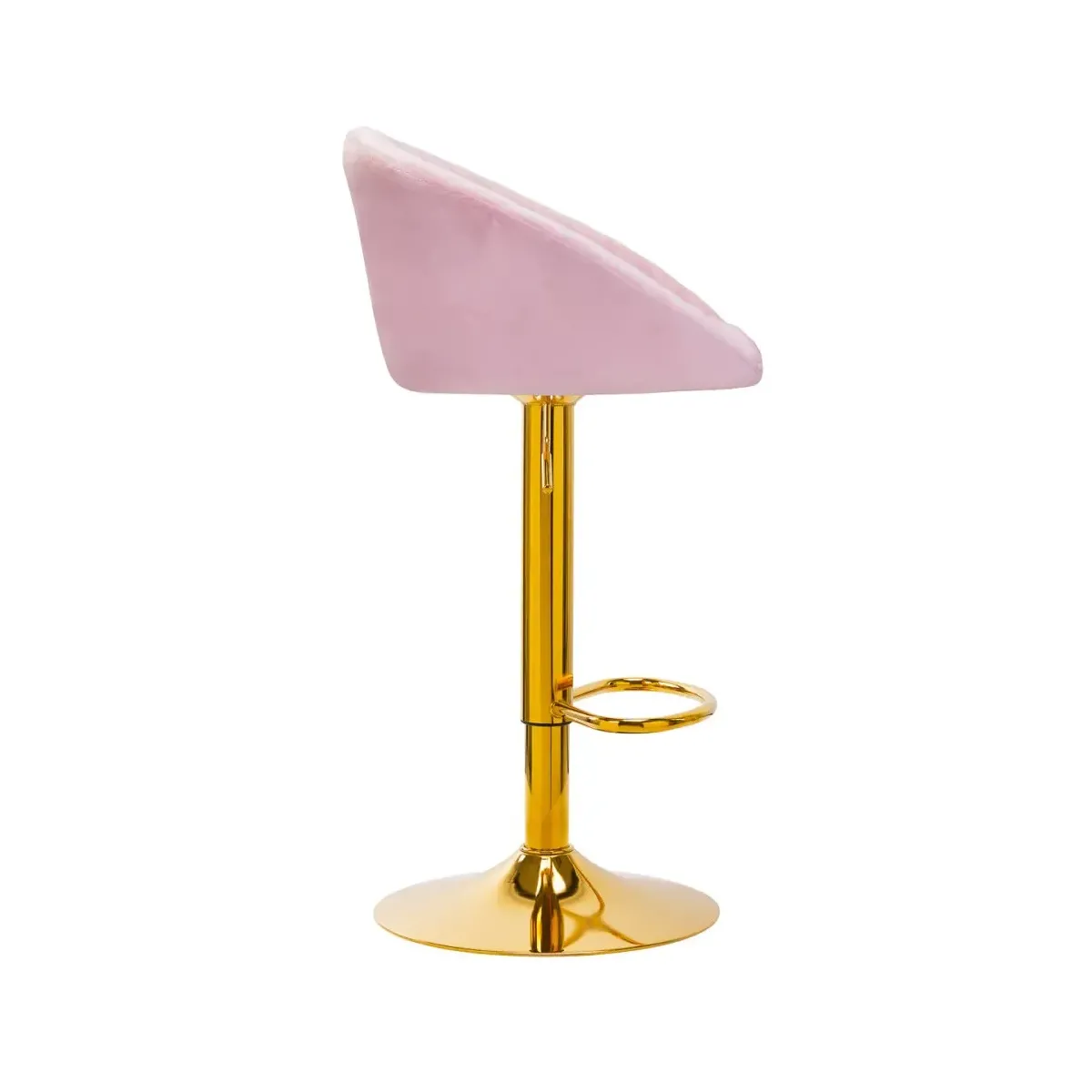 Sgabello Professionale in Velluto Rosa con Base Oro Girevole e Regolabile