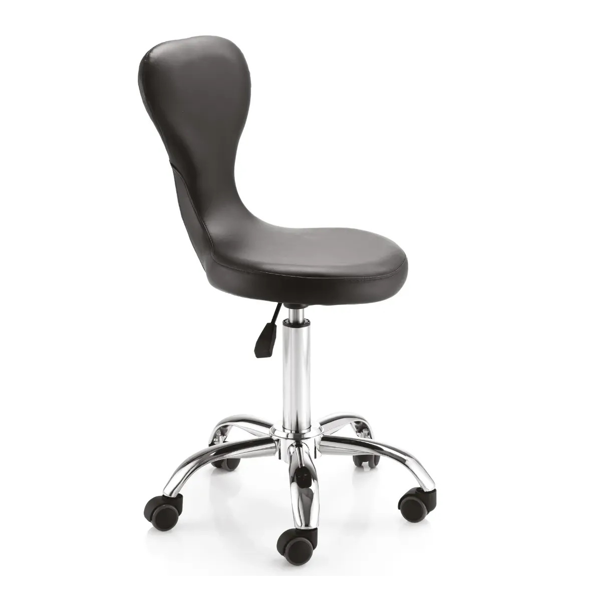Questa sedia si distingue per il suo design raffinato e contemporaneo. Il rivestimento in ecopelle nera di alta qualità conferisce un aspetto lussuoso e professionale, facile da pulire e resistente all'usura. La base cromata lucida a cinque razze aggiunge un tocco di eleganza e modernità, integrandosi perfettamente in qualsiasi ambiente di lavoro, dal salone di bellezza al centro benessere.