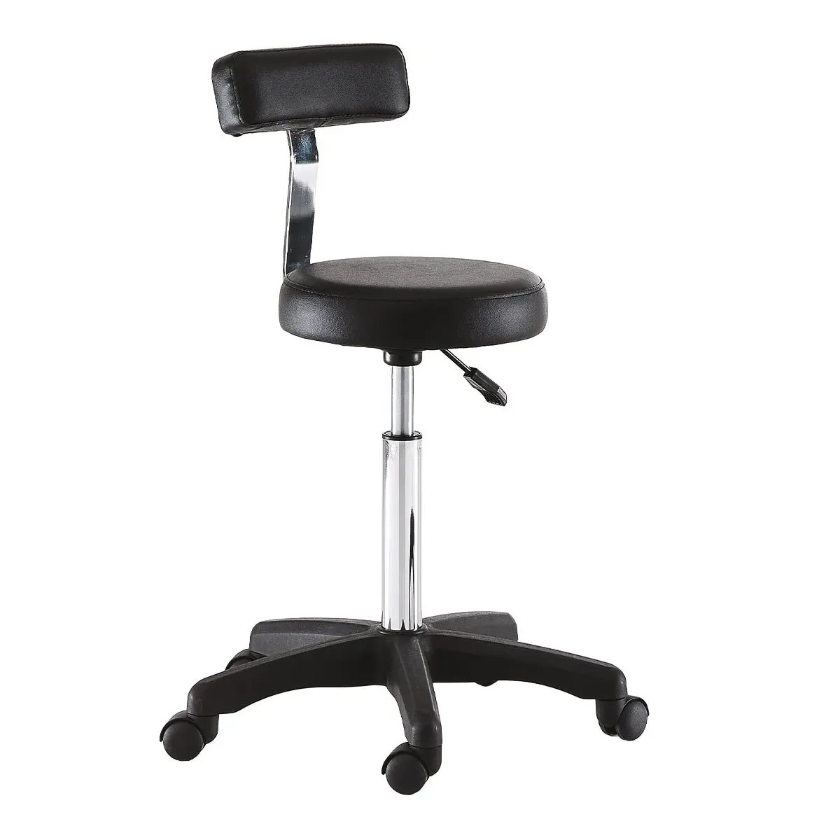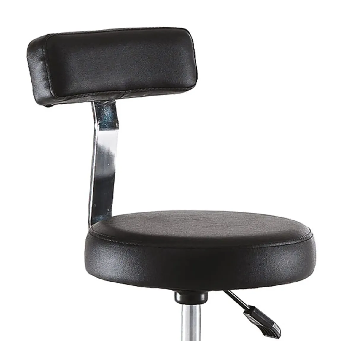 Sgabello Parrucchiere ed Estetista Professionale con con seduta rivestita in sky ecopelle di colore nero.