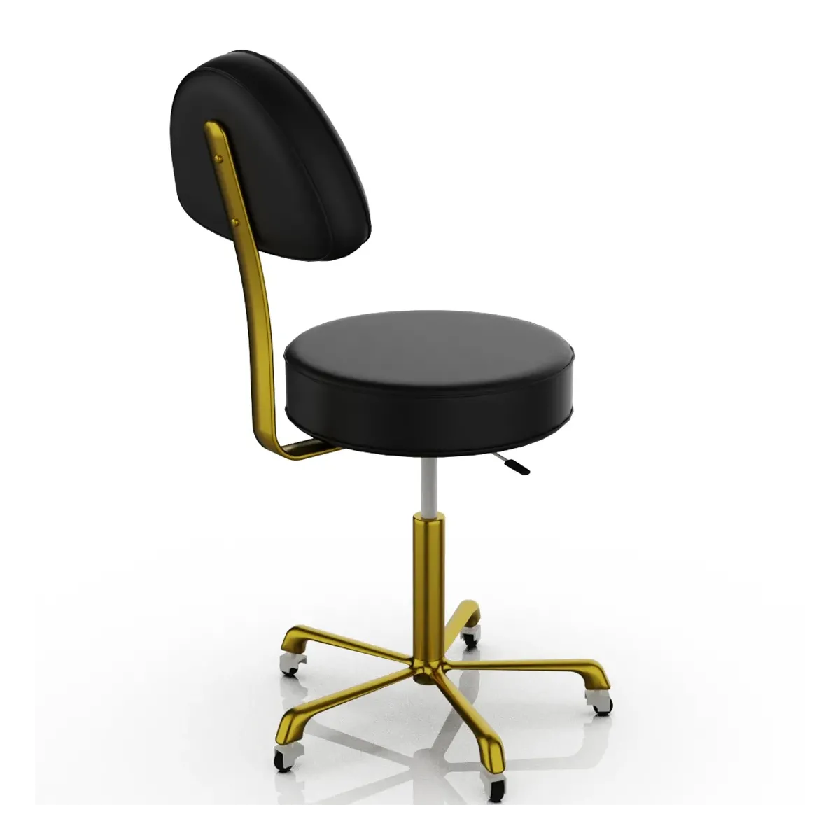 Struttura Robusta: La solida base e il pistone cromato (o dorato) assicurano stabilità e durabilità, rendendo lo sgabello adatto a un uso professionale intensivo.
