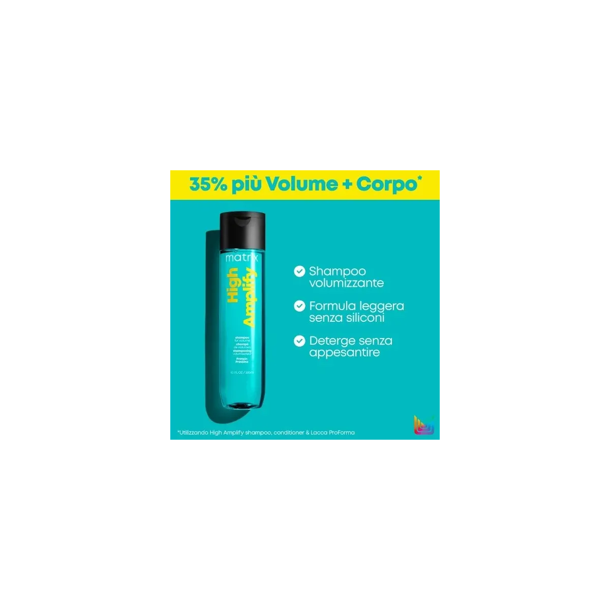 Shampoo High Amplify, formula professionale con proteine, che aiuta a sostenere la struttura dei capelli fini e sfibrati, per un volume duraturo.