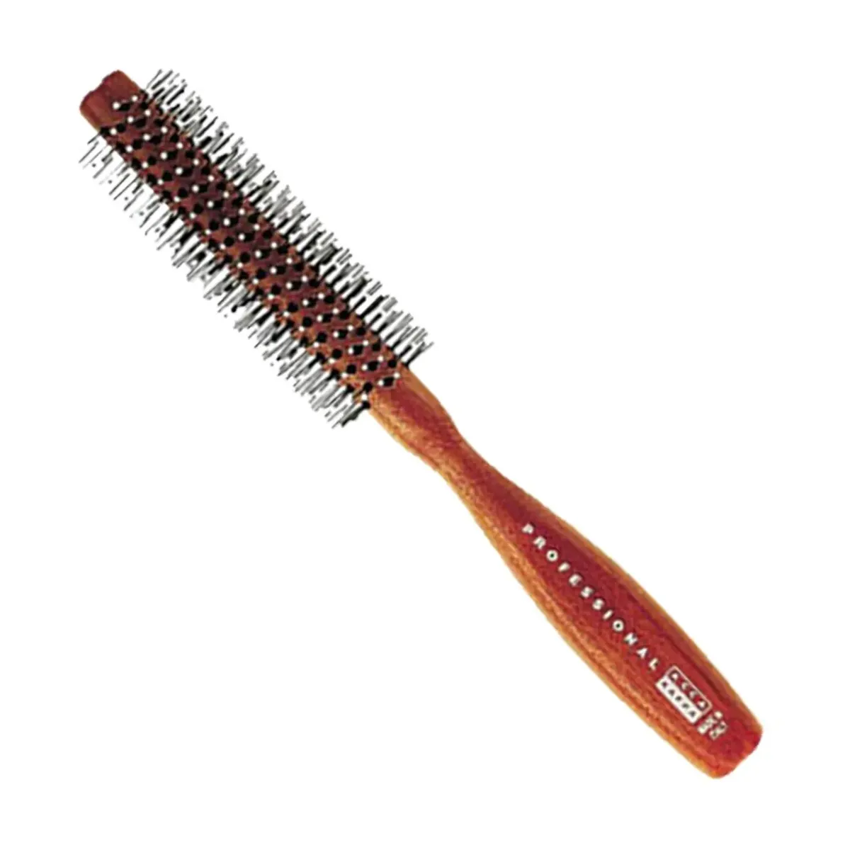 Spazzola tonda in legno acca kappa professionale con punte in nylon e pallina in resina resistente al phon, ideale per capelli medi o corti, ondulati o ricci. Made in Italy.