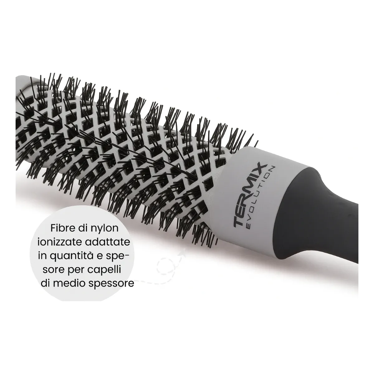 La quantità e la disposizione delle fibre dona alla spazzola una maggiore resistenza ed efficacia permettendo di dare forma e modellare in modo ottimale i capelli normali Le fibre stabilizzate ed ionizzate hanno elevata resistenza al calore e sono antistatiche: eliminano l’effetto crespo e lasciano i capelli incredibilmente lucidi