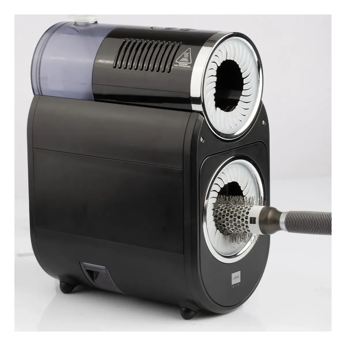 La zona superiore è invece dedicata all'igienizzazione delle spazzole e pettini per capelli, è il secondo step del pulisci spazzole elettrico per parrucchieri e consiste in un sistema di sterilizzazione che si attiva con il vapore, la spazzola verrà infatti posata su comodi supporti.