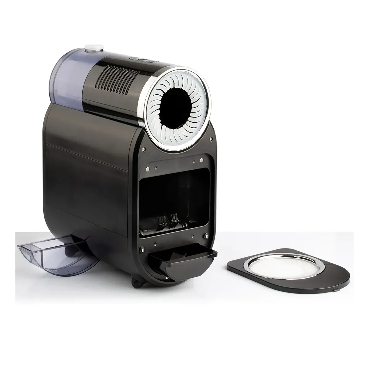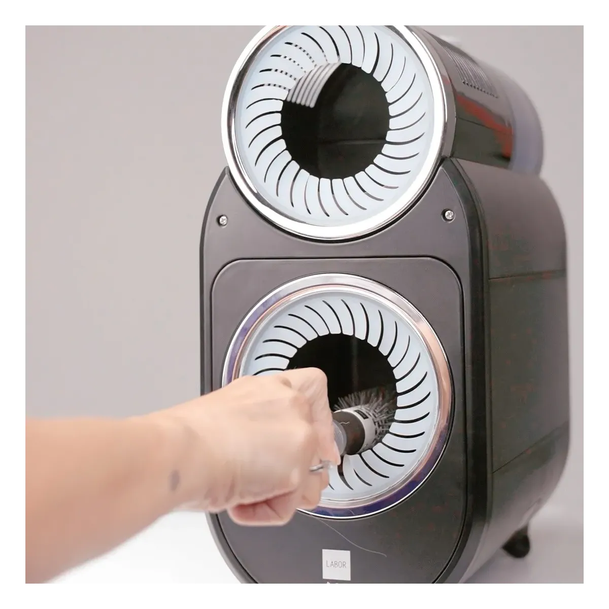 Il pulisci spazzole parrucchieri è anche pratico da pulire, è infatti caratterizzato da uno sportello magnetico che permette un facile cambio di rullo e pulizia della camera, una vaschetta di raccolta di capelli ed una di condensa facilmente estraibili e lavabili.