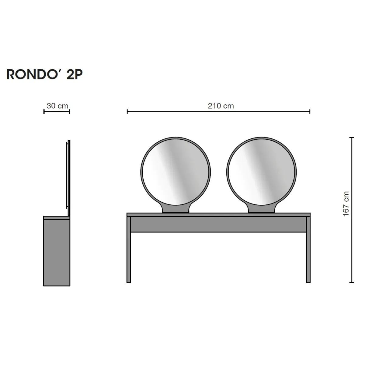 - Dimensioni: Larghezza 210 cm | Profondità 30 cm | Altezza 167 cm
