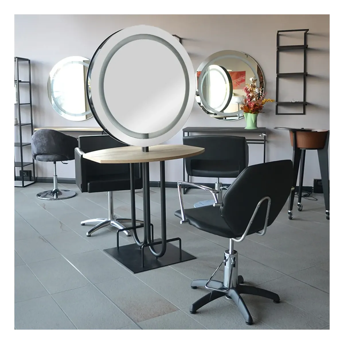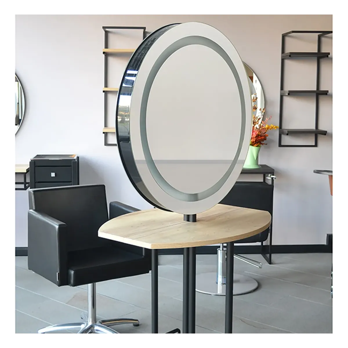 Inoltre è possibile richiedere gli specchi da parrucchiere con illuminazione a led che creeranno una fantastica atmosfera all'interno del salone.