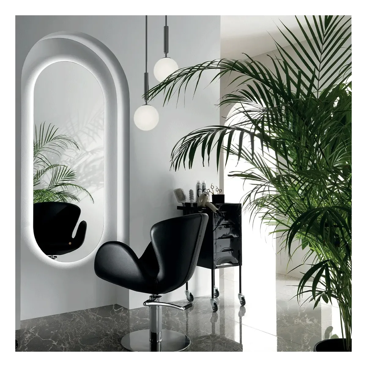 Lo specchio per parrucchieri Alba è la scelta perfetta per arredare in modo elegante il tuo salone, provocando un effetto "wow" ai tuoi clienti quando accenderai l'illuminazione a led di cui è dotato.