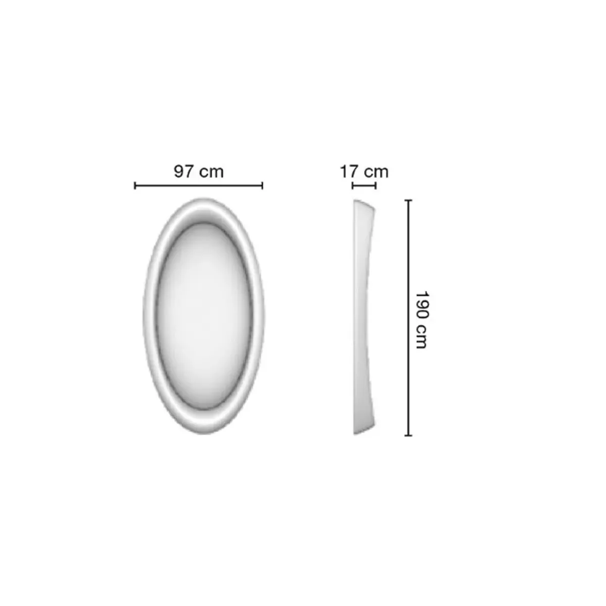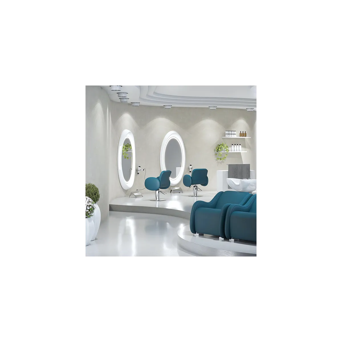 Specchio parrucchieri lussuoso ed originale, di forma ovale che in questo periodo è molto di moda, moltissimi professionisti famosi stanno adottando questo design al loro stile perché si adatta perfettamente a qualunque idea di arredamento.