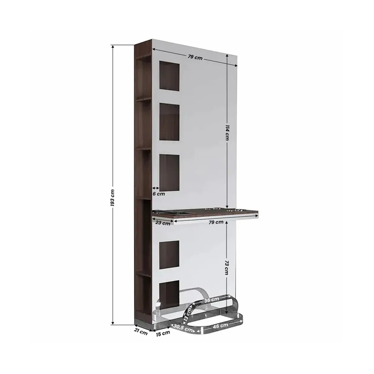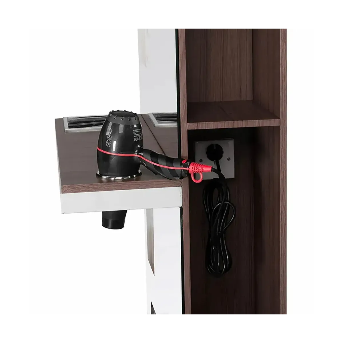 Design Elegante e Funzionale: Il design dello specchio è moderno e versatile, adatto a diversi stili di arredamento. La sua struttura compatta e funzionale permette di ottimizzare lo spazio nel salone.