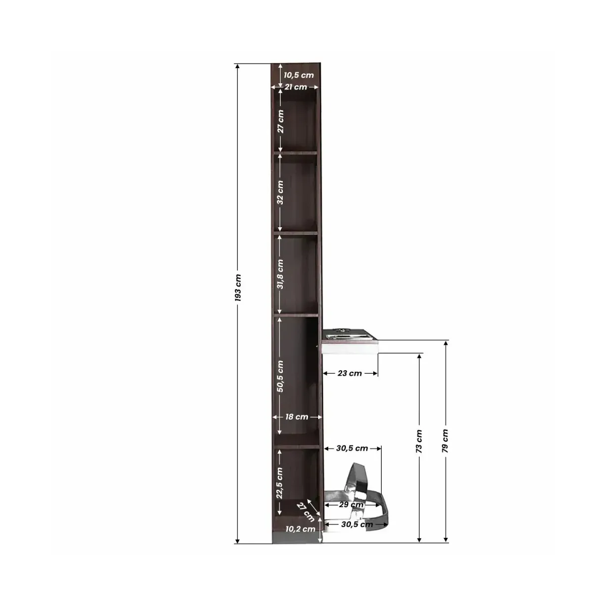 Espositore Laterale Integrato: L'espositore laterale è composto da ripiani a giorno che offrono spazio per esporre prodotti, accessori e strumenti di lavoro. La sua struttura modulare permette di organizzare gli oggetti in modo creativo e funzionale.