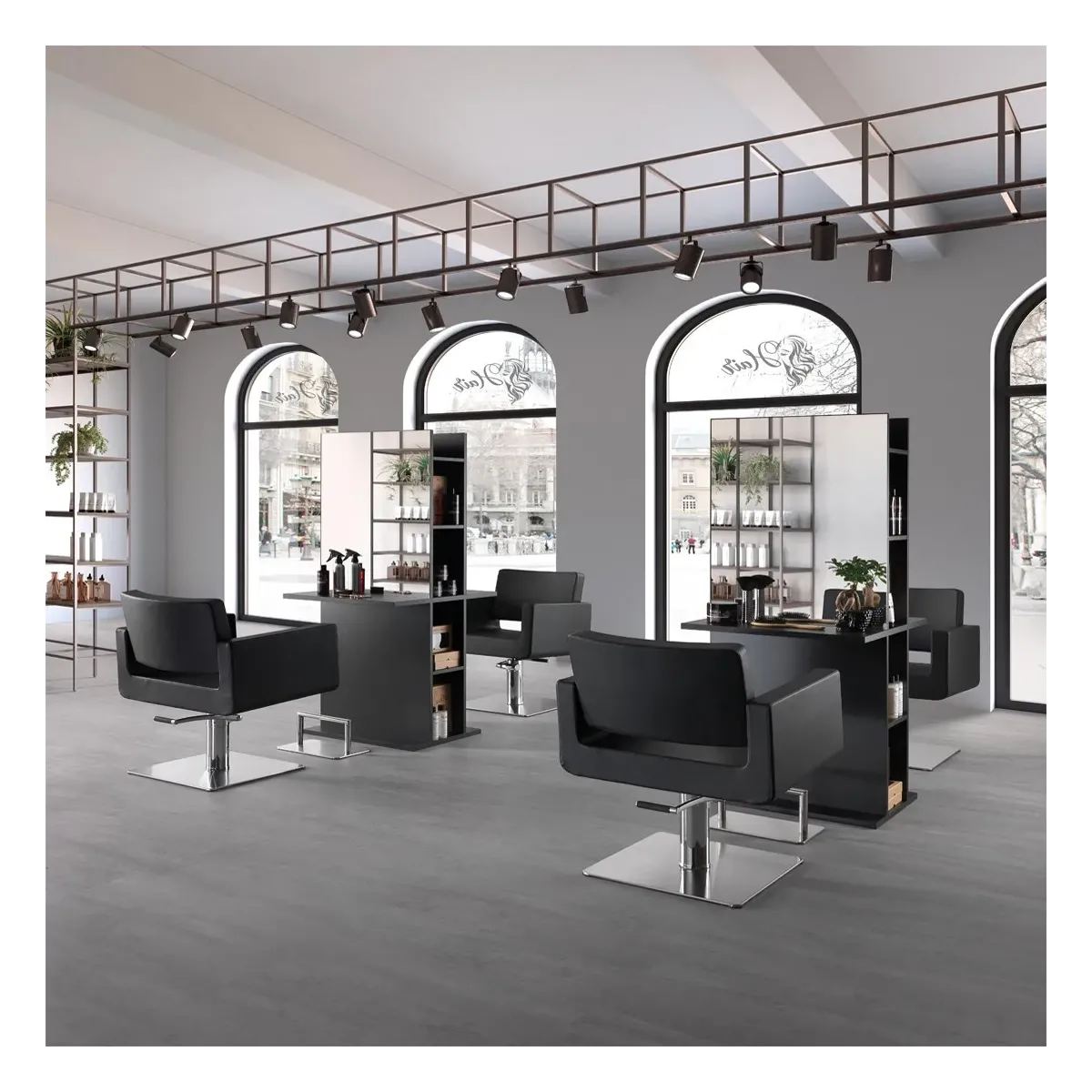 Lo specchio centrale misura 60x100 cm, offrendo un'ampia superficie riflettente per una visione chiara e completa. La dimensione è ideale per consentire ai clienti di osservare i risultati del taglio e dello styling da diverse angolazioni.