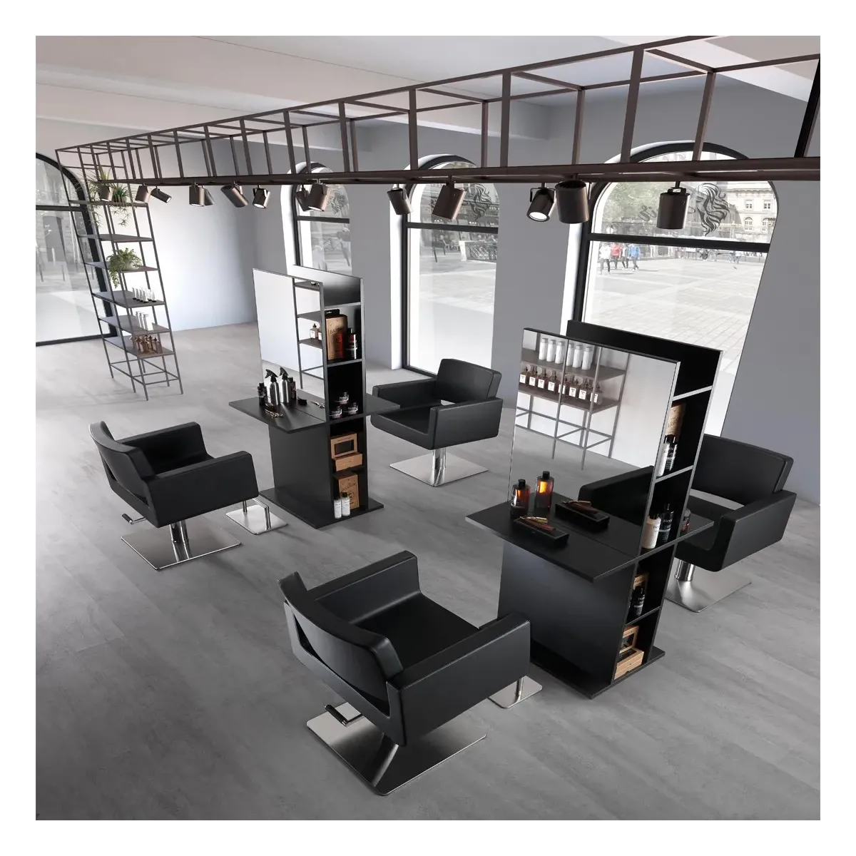 Arredamento Parrucchieri 4 Posti da Lavoro con 2 Specchi Doppi OFFERTA