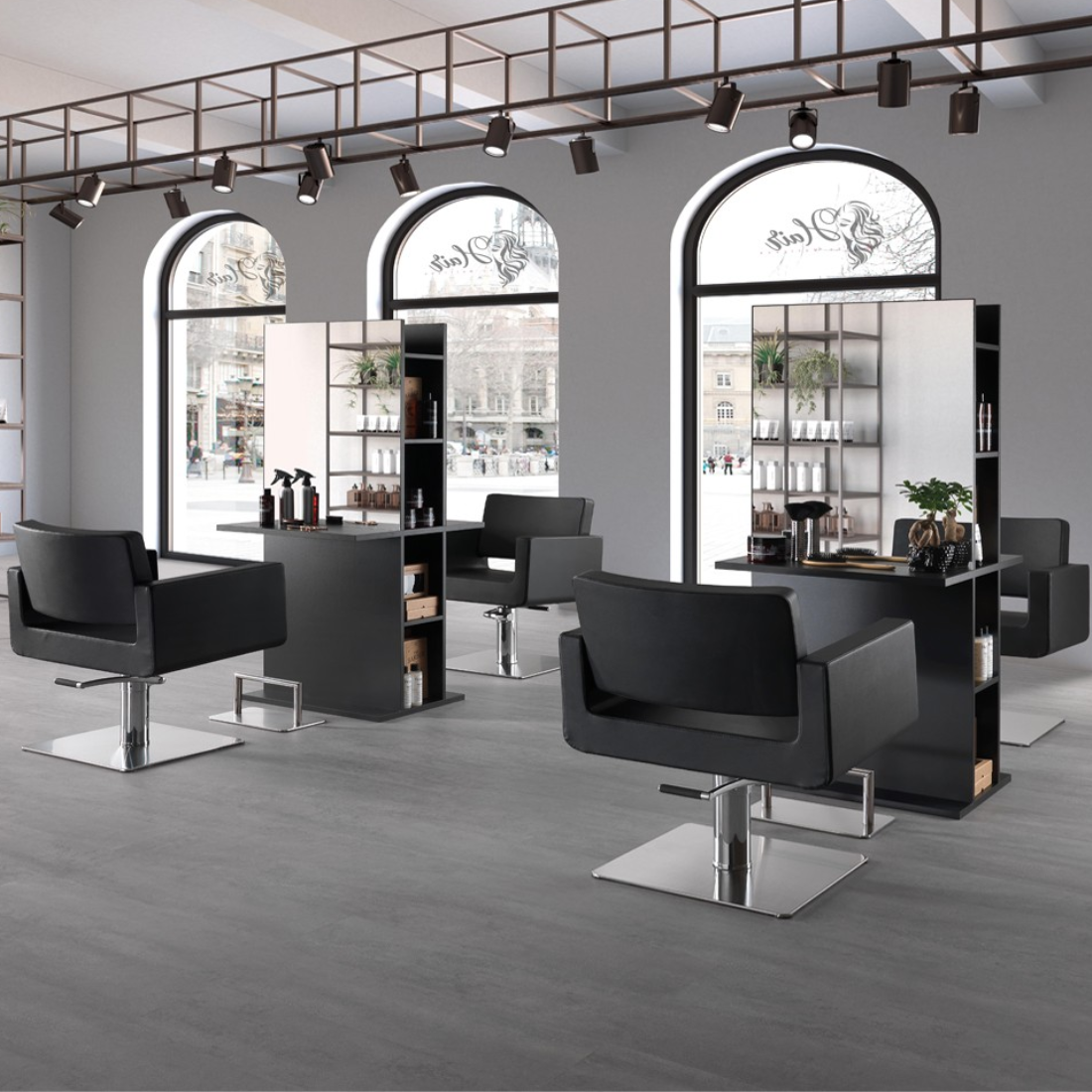 Questo Specchio Doppia Postazione parrucchiere è progettato per ottimizzare lo spazio e l'efficienza in un salone Hair. La struttura è realizzata in legno resistente, garantendo stabilità e durata nel tempo. Il design è moderno e minimalista, con linee pulite e una finitura nera elegante che si adatta a qualsiasi arredamento.