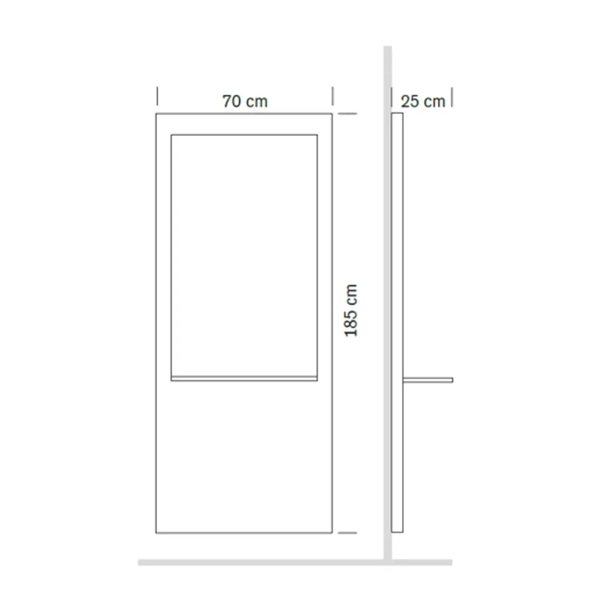- Dimensioni totali: Larghezza 70 cm | Profondità 25 cm | Altezza 185 cm