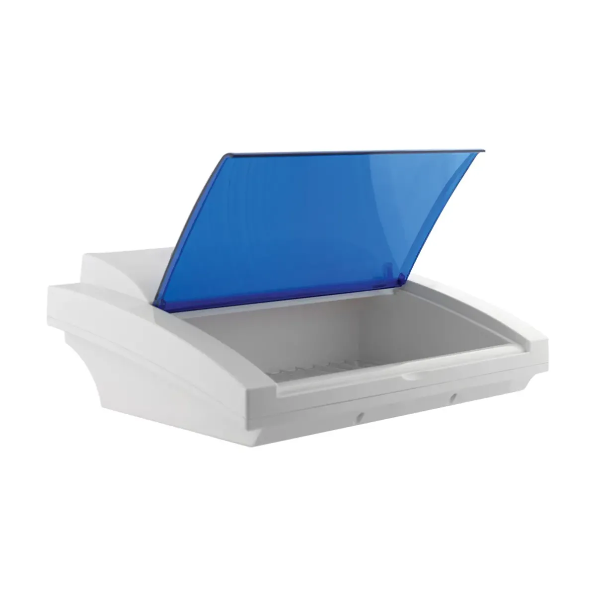 Lo Sterilizzatore UV Professionale è uno strumento indispensabile per tutti i professionisti del settore estetico, medico e dell’acconciatura che desiderano garantire il massimo livello di igiene ai propri clienti. Grazie alla tecnologia a raggi ultravioletti (UV-C), questo sterilizzatore elimina efficacemente batteri, virus e germi da attrezzi e strumenti metallici o in plastica dura, senza l’uso di alte temperature o sostanze chimiche. Il design compatto ma capiente, con dimensioni di 44x31x11 cm, permette di riporre al suo interno una varietà di strumenti come forbici, pinzette, lime, testine di rasoi e molto altro. Il coperchio blu semitrasparente protegge dalla dispersione dei raggi UV durante il funzionamento, garantendo al contempo una visione chiara del contenuto. Realizzato in plastica robusta e facile da pulire, questo dispositivo si adatta perfettamente a centri estetici, barber shop, studi di tatuaggi, ambulatori e saloni di bellezza. Non è solo uno strumento per la disinfezione, ma anche un contenitore igienico ideale per la conservazione sicura degli strumenti già trattati. Affidati alla sicurezza e all’efficacia di un sistema di sterilizzazione a freddo per proteggere il tuo ambiente di lavoro e rafforzare la fiducia dei tuoi clienti. Uno strumento pratico, economico ed ecologico, pronto a diventare parte integrante del tuo protocollo di igiene quotidiano.