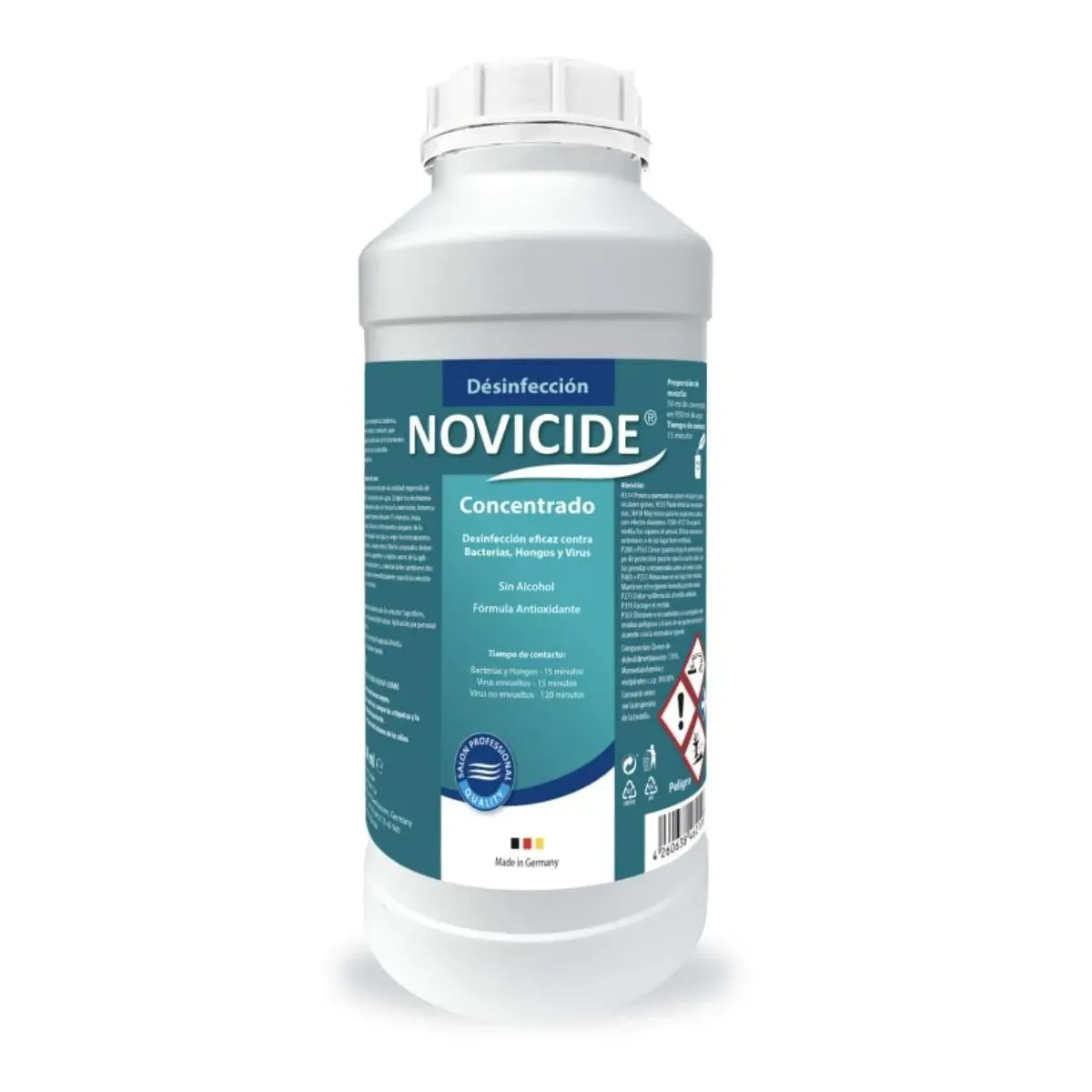 Novicide concentrato con azione contro virus, funghi e batteri ed azione antiruggine per attrezzi in metallo o plastica dei saloni per parrucchieri, saloni per barbieri, centri estetici e strutture sanitarie. Azione battericida, virucida, funghicida. Igienizzazione sicura ed efficace delle superfici acriliche (solarium), in acciaio inox, plastica, pettini, spazzole, rulli, forbici e strumenti per manicure. Speciale formula con protezione antiruggine.