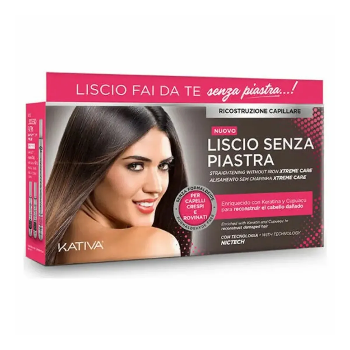 Trattamento Lisciante alla Cheratina ed estratto di Cupuaçu Kativa, perfetto per ricostruire i capelli crespi e rovinati da tinte, decolorazioni e colpi di sole. Può essere applicato su tutti i tipi di capelli anche se in precedenza sono stati effettuati altri trattamenti liscianti.
