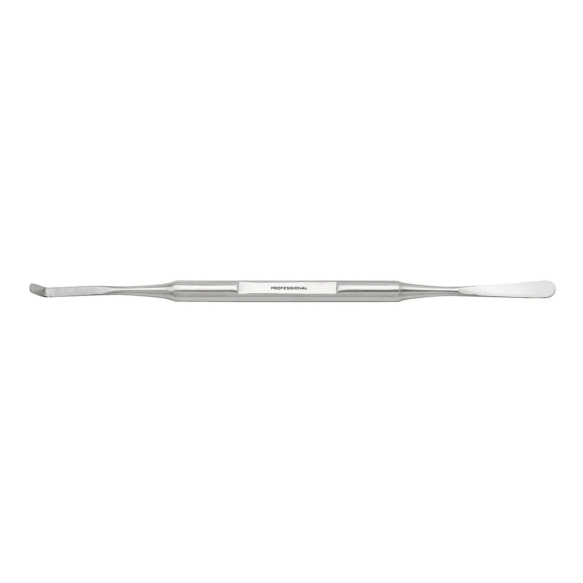 La Spatola Doppia Punta Sottile e Piegata in Acciaio Inox è uno strumento professionale ideale per la preparazione e la rifinitura delle unghie durante i trattamenti di manicure e pedicure.