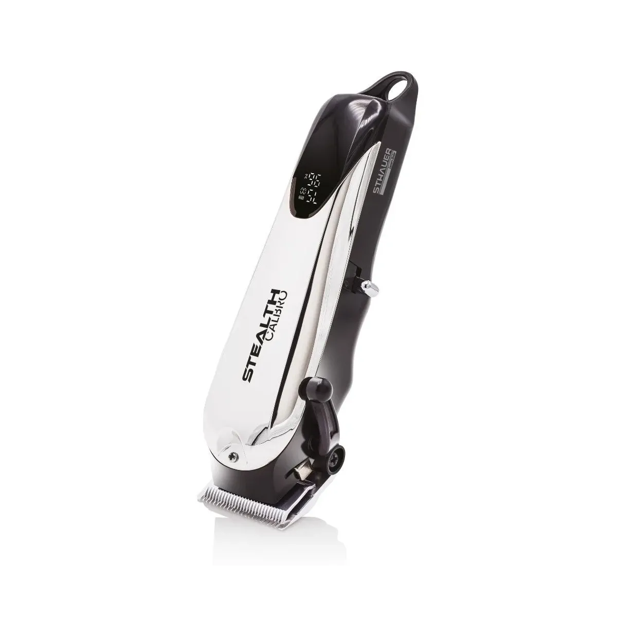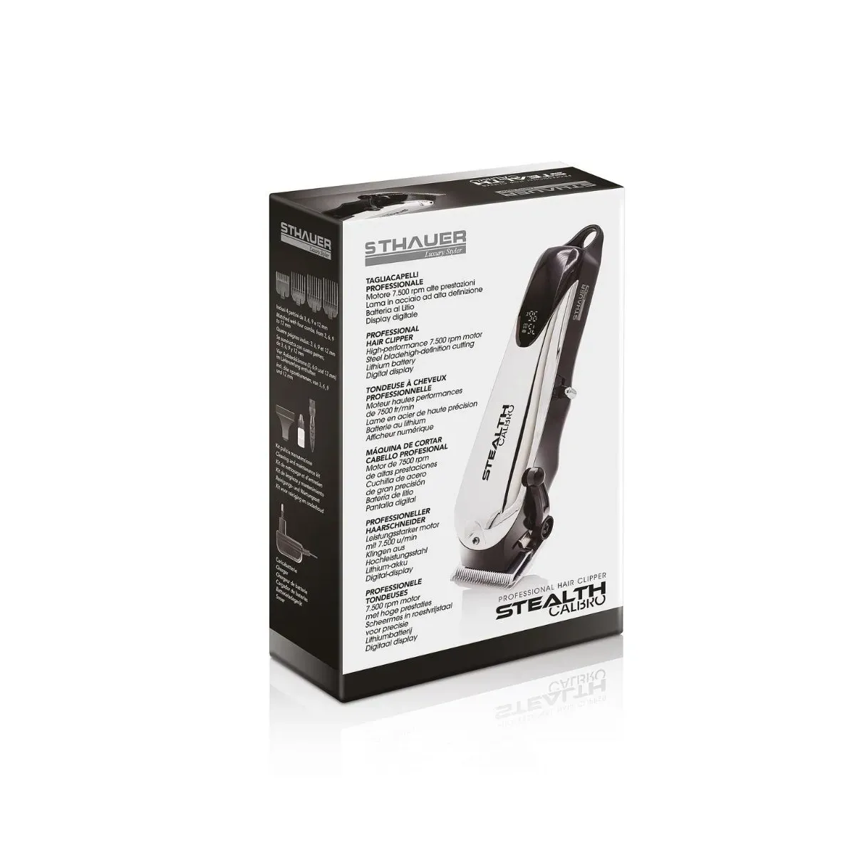 Tagliacapelli professionale Sthauer Stealth con batteria al litio ricaricabile dalla durata di 4 ore con visualizzazione di percentuale su display ed utilizzabile anche con filo durante la ricarica la quale dura 3 ore. Le lame sono fatte in acciaio per un'alta definizione di taglio con leva di regolazione, il tutto è alimentato da un motore da 7500 rpm.