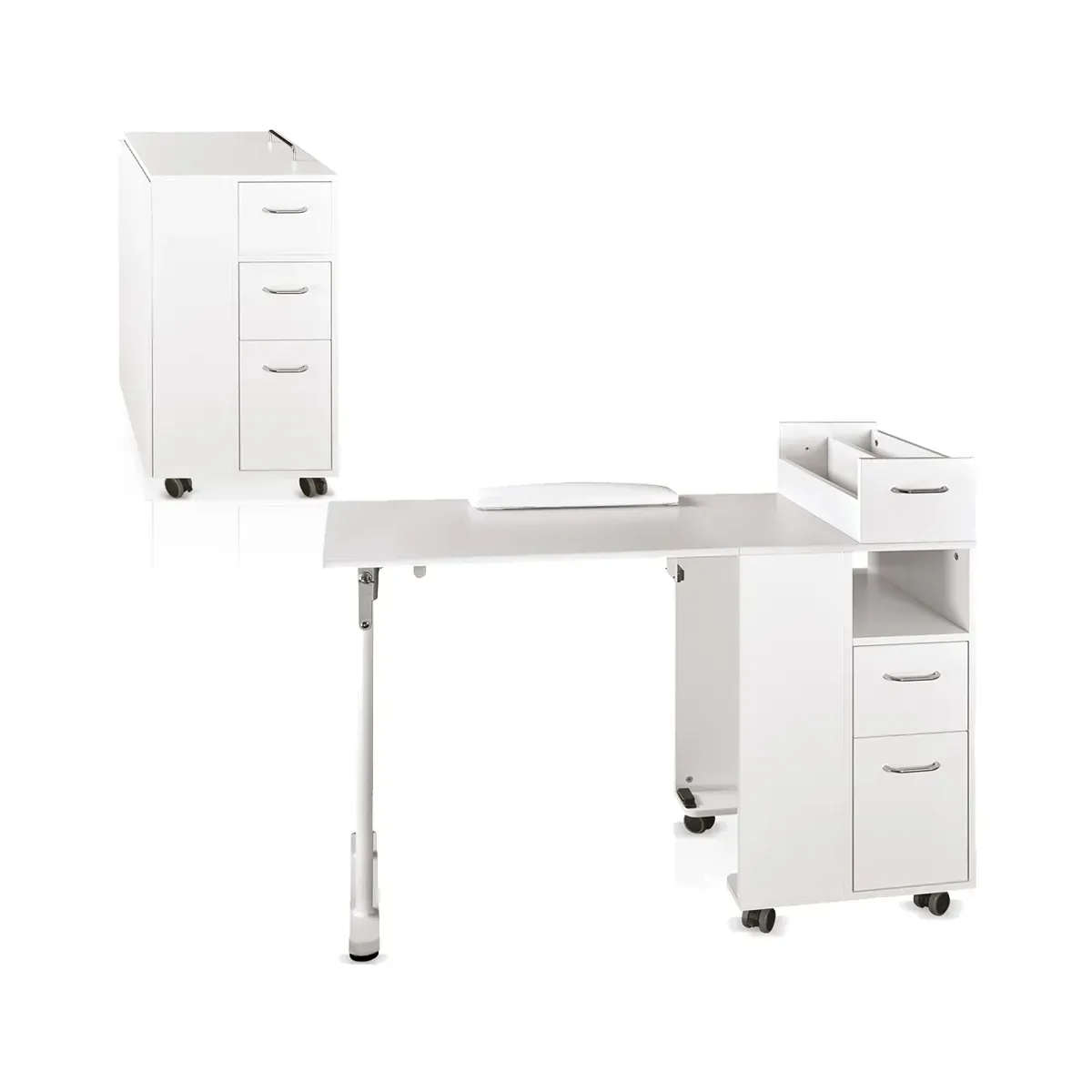 Tavolo Manicure Pieghevole con 3 Cassetti e Cuscino Poggiamani