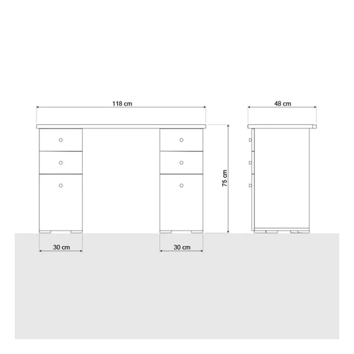 - 6 cassetti totali (3 per lato), con maniglie tonde in ABS