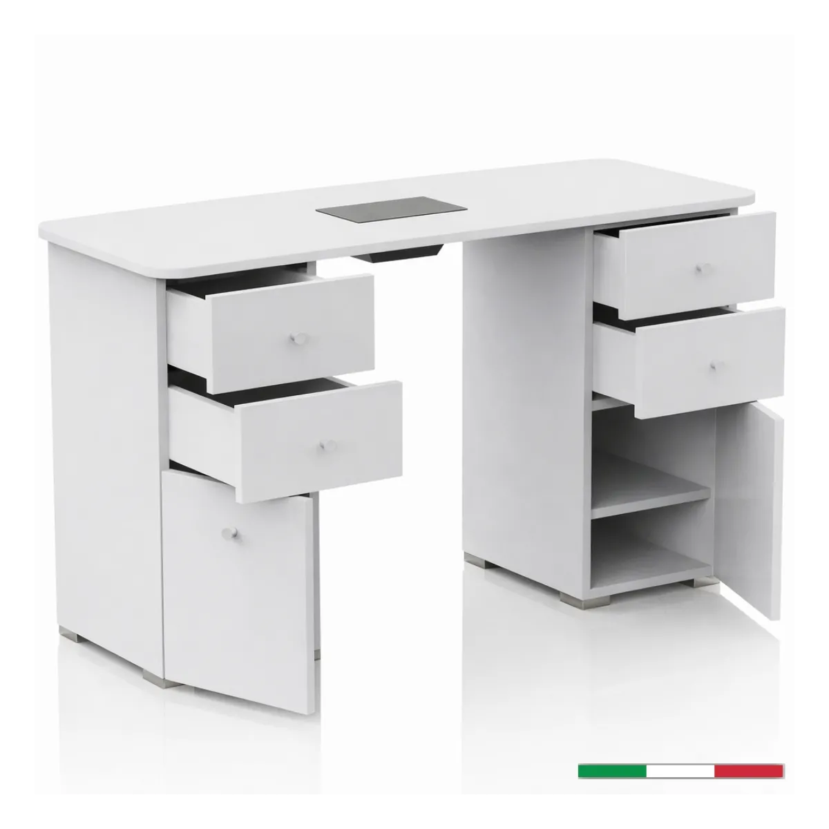 Tavolo Manicure Professionale Bianco con Aspiratore Integrato e Cassetti