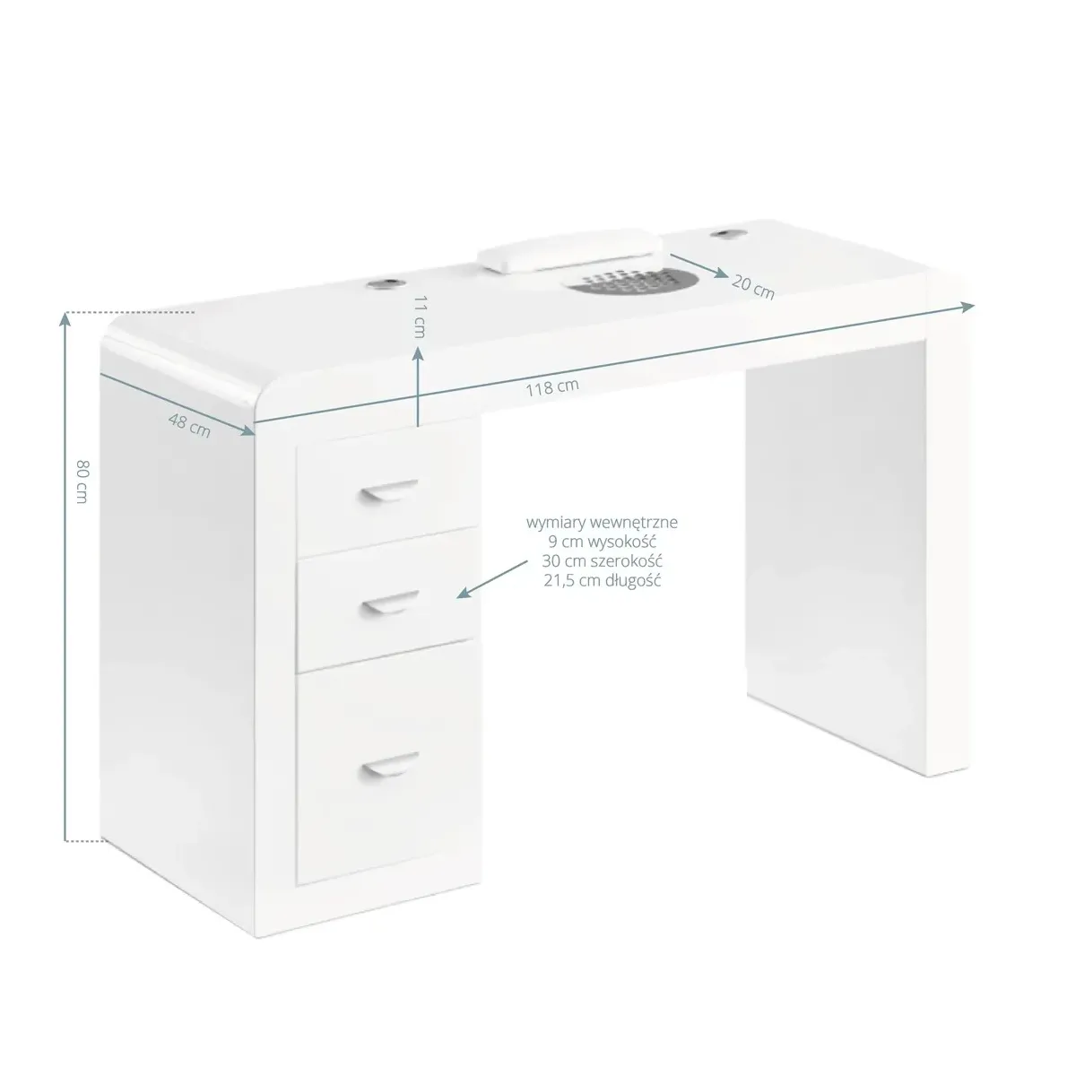 Tavolo Manicure Nail Professionale con Aspiratore Polveri e 3 Cassetti