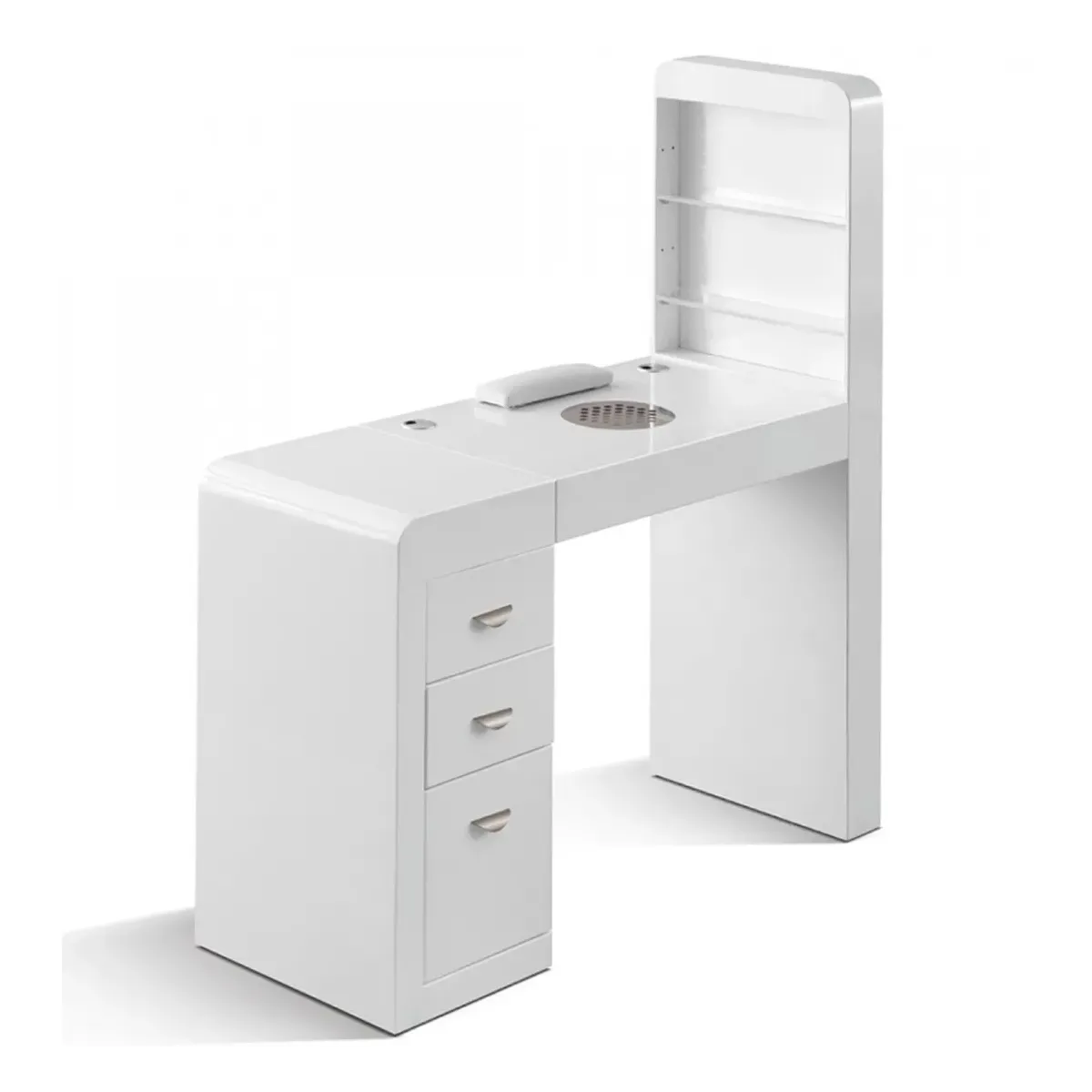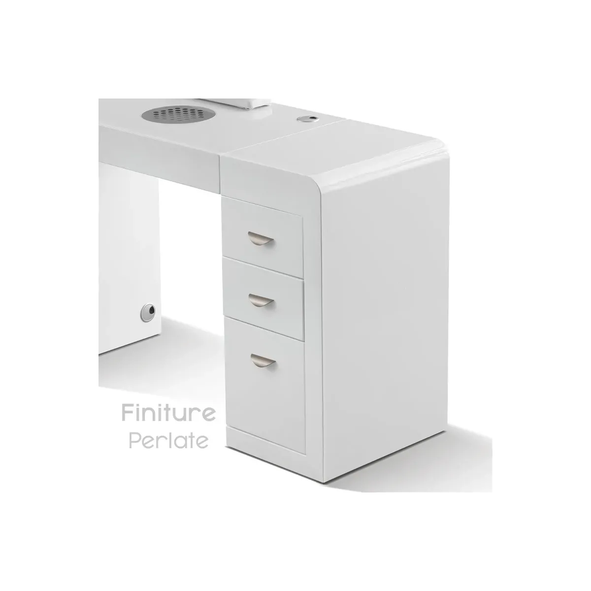 Aspiratore Polveri Integrato: Aspiratore Unghie Professionale : Dotato di un aspiratore ad incasso da 24 Watt per le polveri della limatura unghie integrato nel tavolo mani per mantenere l'area di lavoro pulita, proteggendo la salute sia l'onicotecnica che la cliente durante la limatura delle unghie.