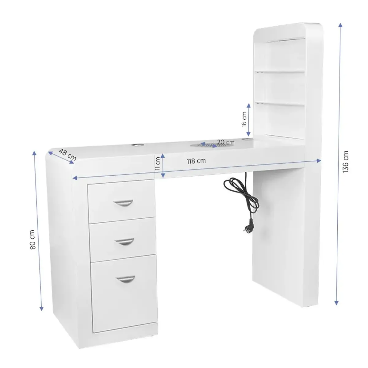 Superficie di Lavoro Spaziosa e Confortevole: La superficie di lavoro è progettata per offrire ampio spazio per eseguire manicure e nail art in totale comodità.