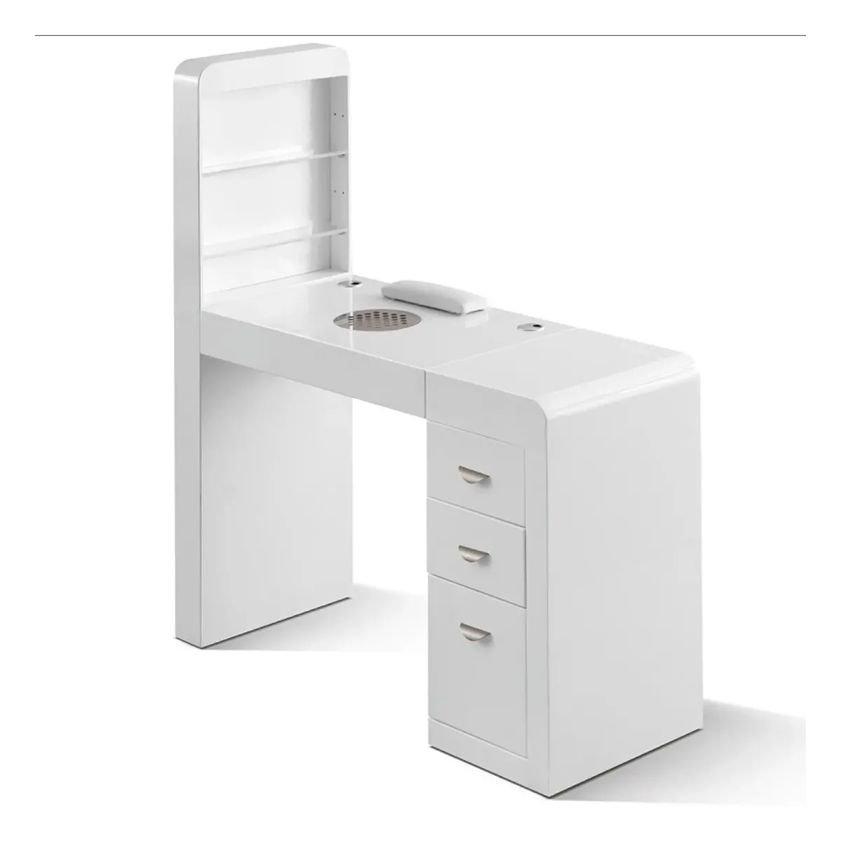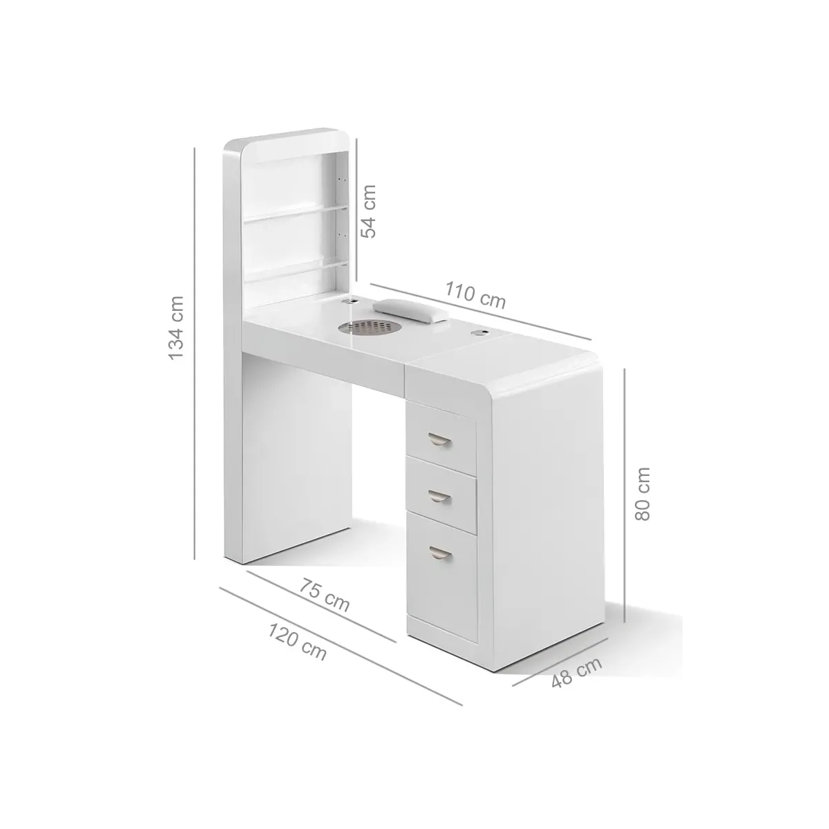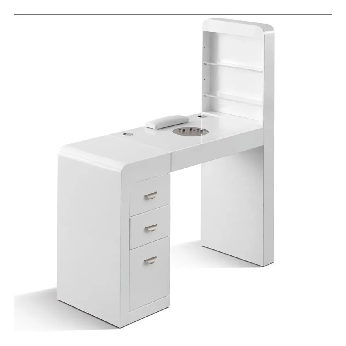 Doppi Aspiratori Polveri Integrati: Aspiratore Unghie Professionale : Dotato di un aspiratore ad incasso da 24 Watt per le polveri della limatura unghie integrato nel tavolo mani per mantenere l'area di lavoro pulita, proteggendo la salute sia l'onicotecnica che la cliente durante la limatura delle unghie.