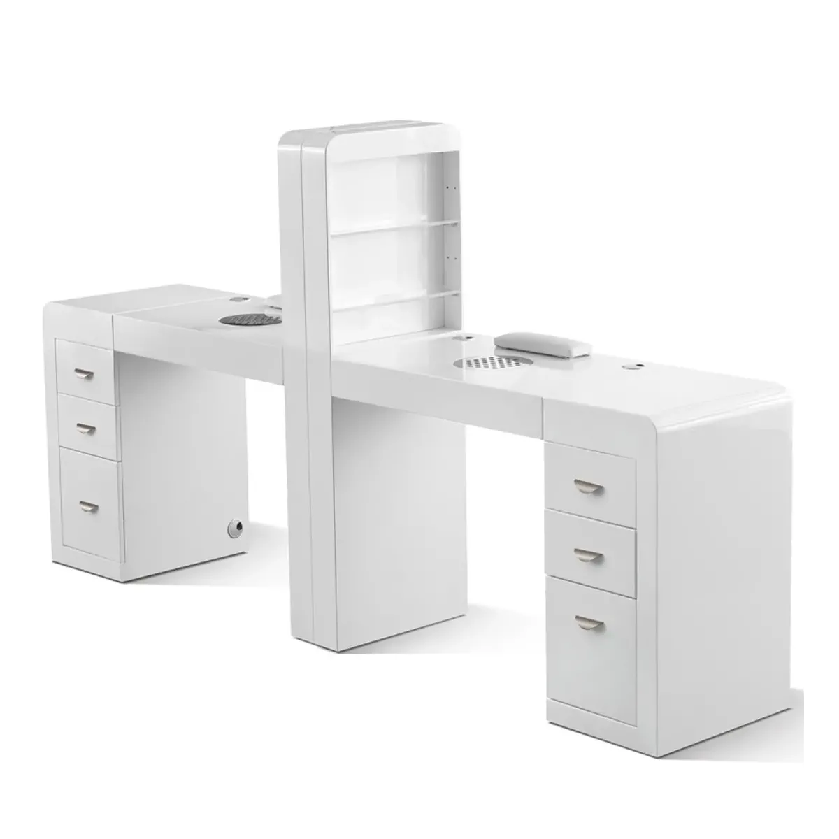 Tavolo Manicure Doppia Postazione con Aspiratori ed Espositori Gel e Smalti