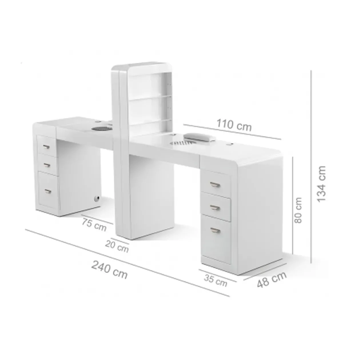 Tavolo Manicure 2 Posti Professionale con Aspiratori ed Espositori Gel e Smalti, una soluzione completa e versatile, progettata per elevare la tua attività e soddisfare le esigenze di chi cerca il massimo in termini di funzionalità, design e organizzazione. Questo tavolo non è solo un elemento d'arredo, ma un vero e proprio investimento nel successo del tuo salone, offrendo un ambiente di lavoro efficiente, pulito e professionale.
