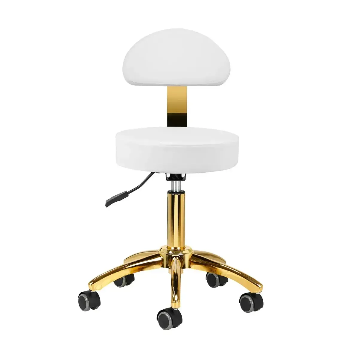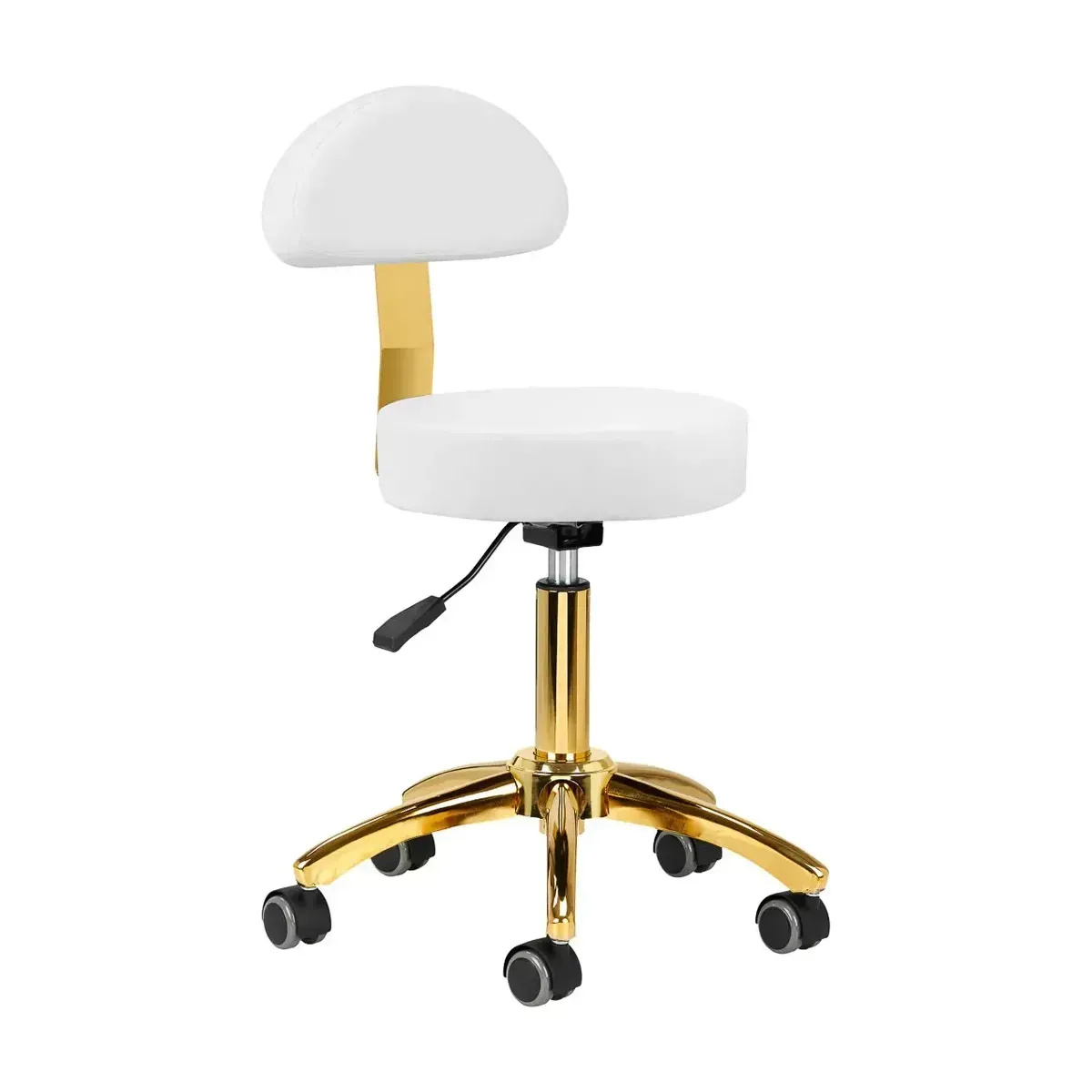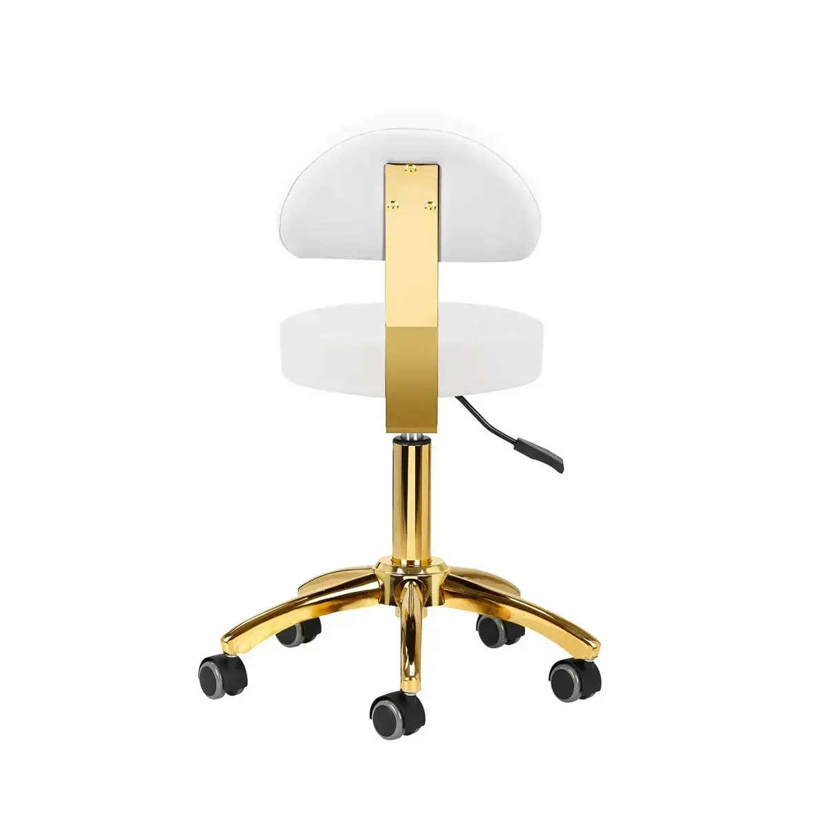 Sgabello Estetista Professionale Oro Eleva il comfort e lo stile del tuo centro estetico con questo sgabello professionale di alta qualità, progettato per offrire il massimo supporto e funzionalità sia all'estetista che al cliente. Il suo design ergonomico, unito alla praticità della regolazione in altezza, lo rende un elemento indispensabile per qualsiasi ambiente di lavoro dedicato alla bellezza e al benessere.