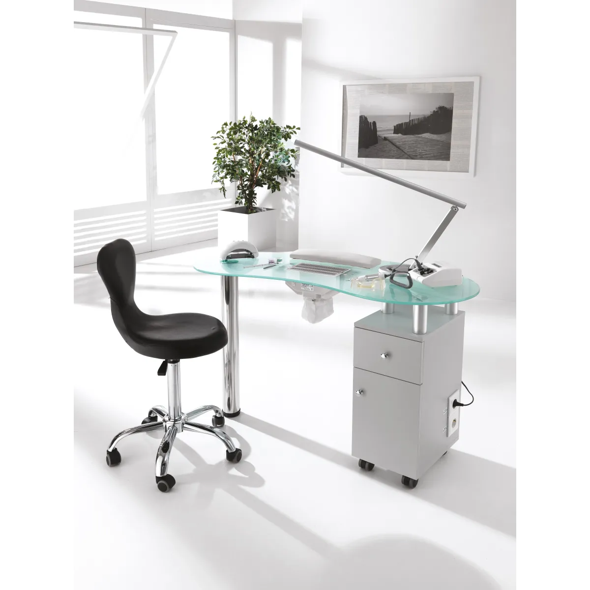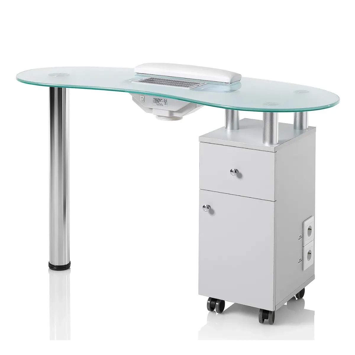Tavolo Manicure con Aspiratore Polveri e Piano in Vetro Temperato