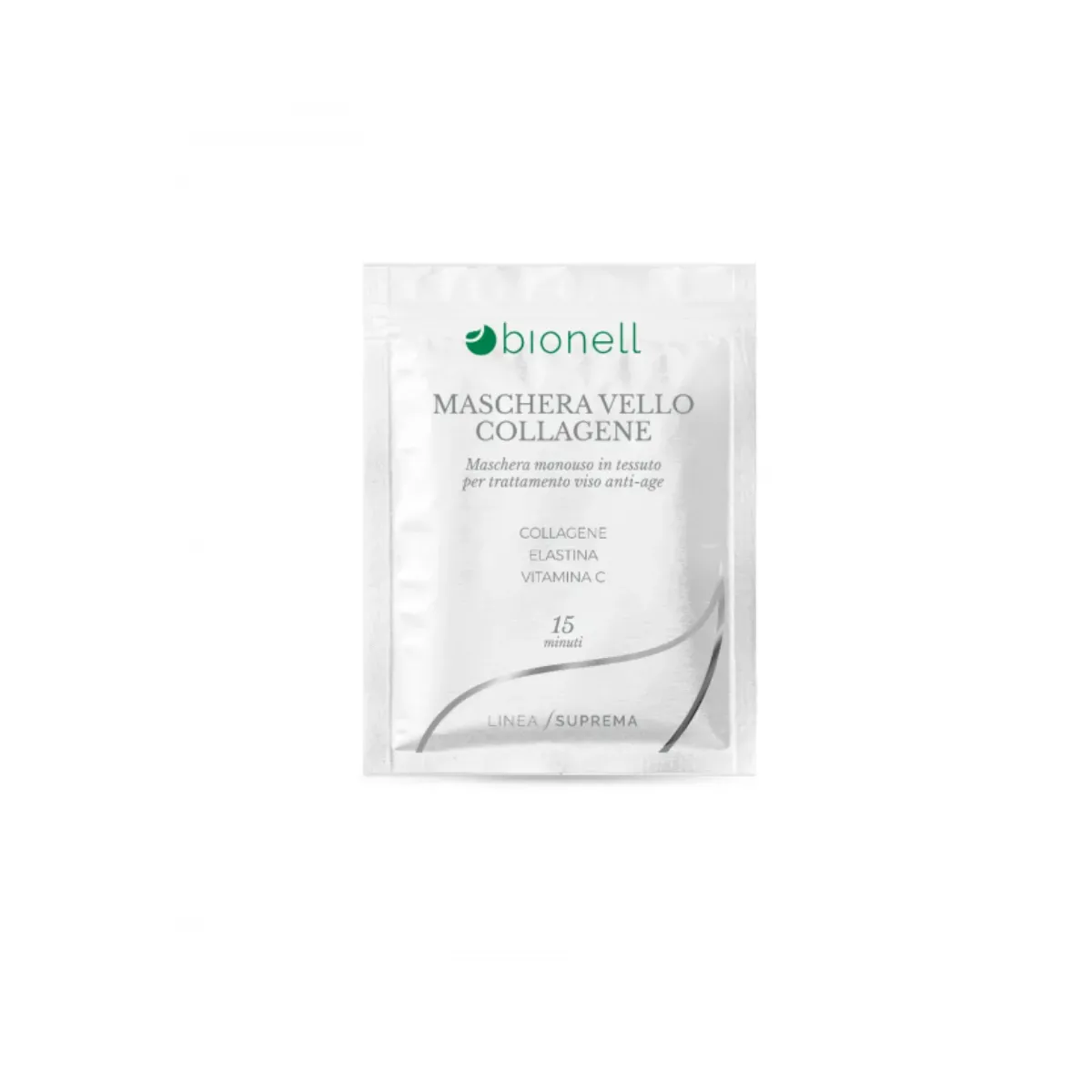 Maschera Viso Collagene 6 pz. Monouso Bionell Senza Parabeni è una maschera monouso in tessuto ad attività nutriente e restitutiva. Il suo contenuto proteico e vitaminico è ideale per un trattamento intensivo anti-age, capace di donare alla pelle gli elementi essenziali per conservare le strutture biologiche responsabili del tono e dell’elasticità cutanea.