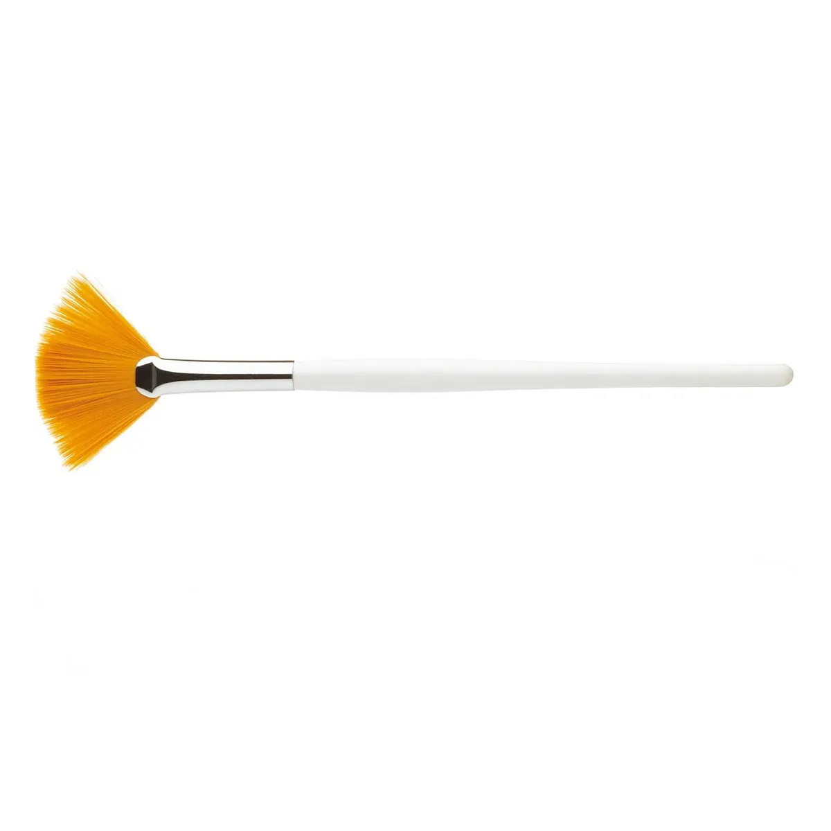 Pennello viso professionale a forma di ventaglio in setole sintetiche creata per offrire flessibilità, morbidezza e resistenza all’usura.