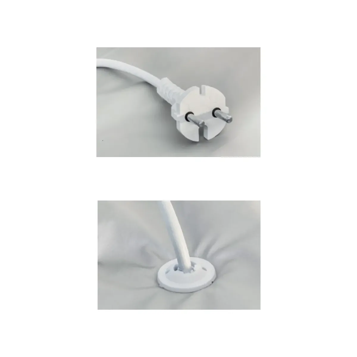 Cavi di alimentazione raccolti ai piedi della termocoperta. Dispositivo di comando sempre a portata di mano.